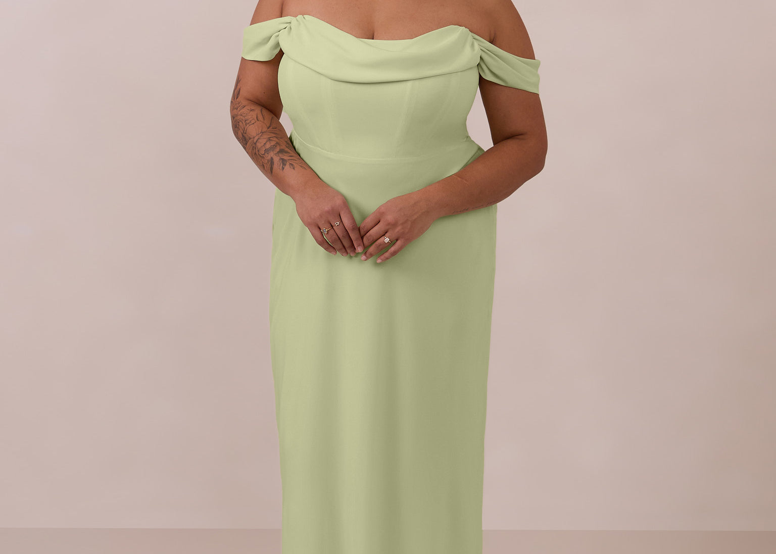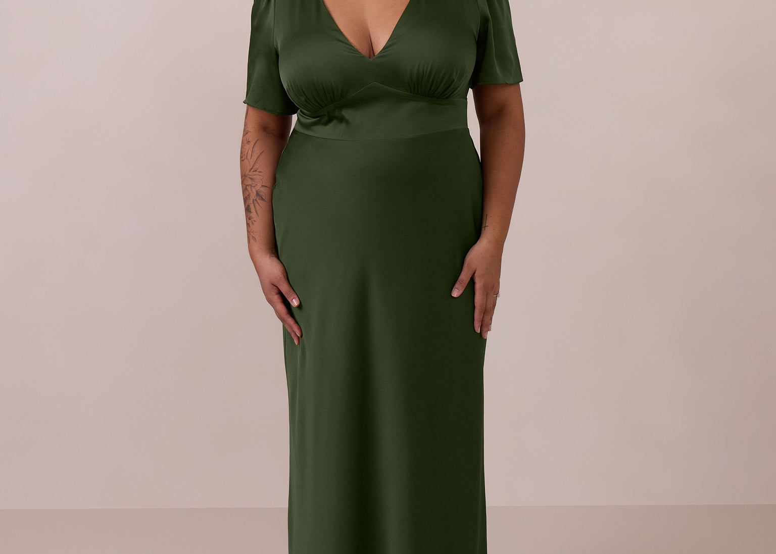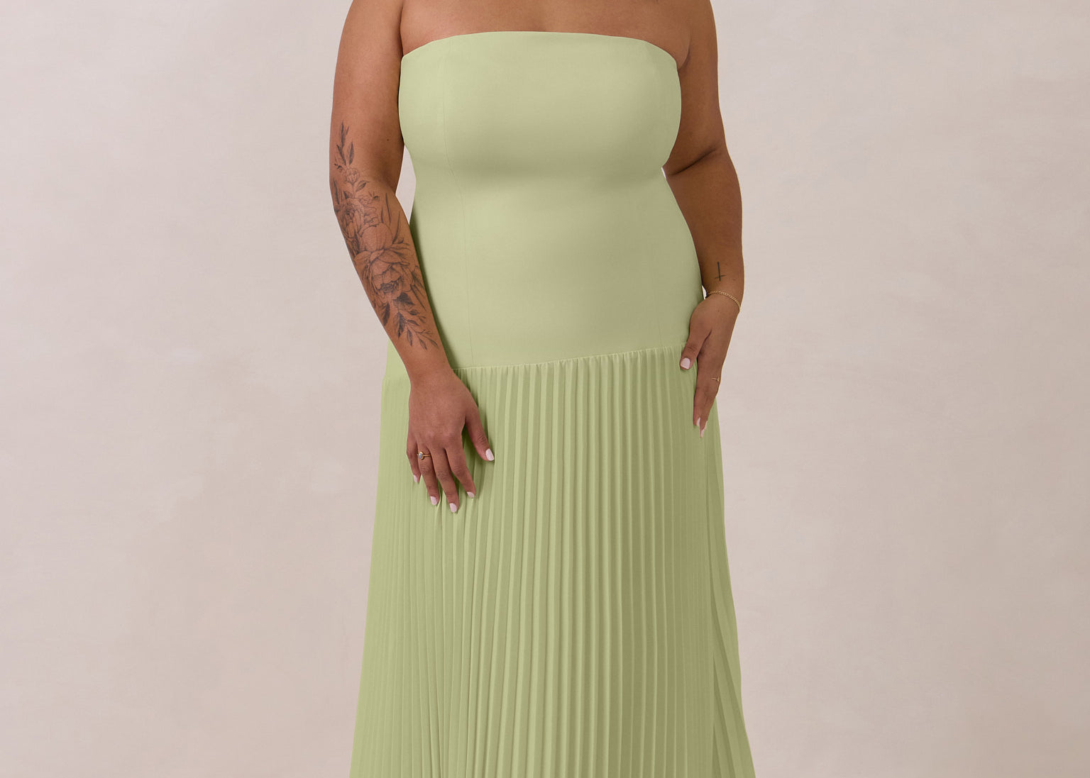 Our green palette spans delicate pale sage, warm olive tones, and bold hunter green, alongside a curated selection of romantic florals and refined prints. Many of our most popular styles are available in plus sizes up to 3X, making them ideal for mix-and-match bridal parties where bridesmaids can select a dress of her preference while looking elegantly unified together.