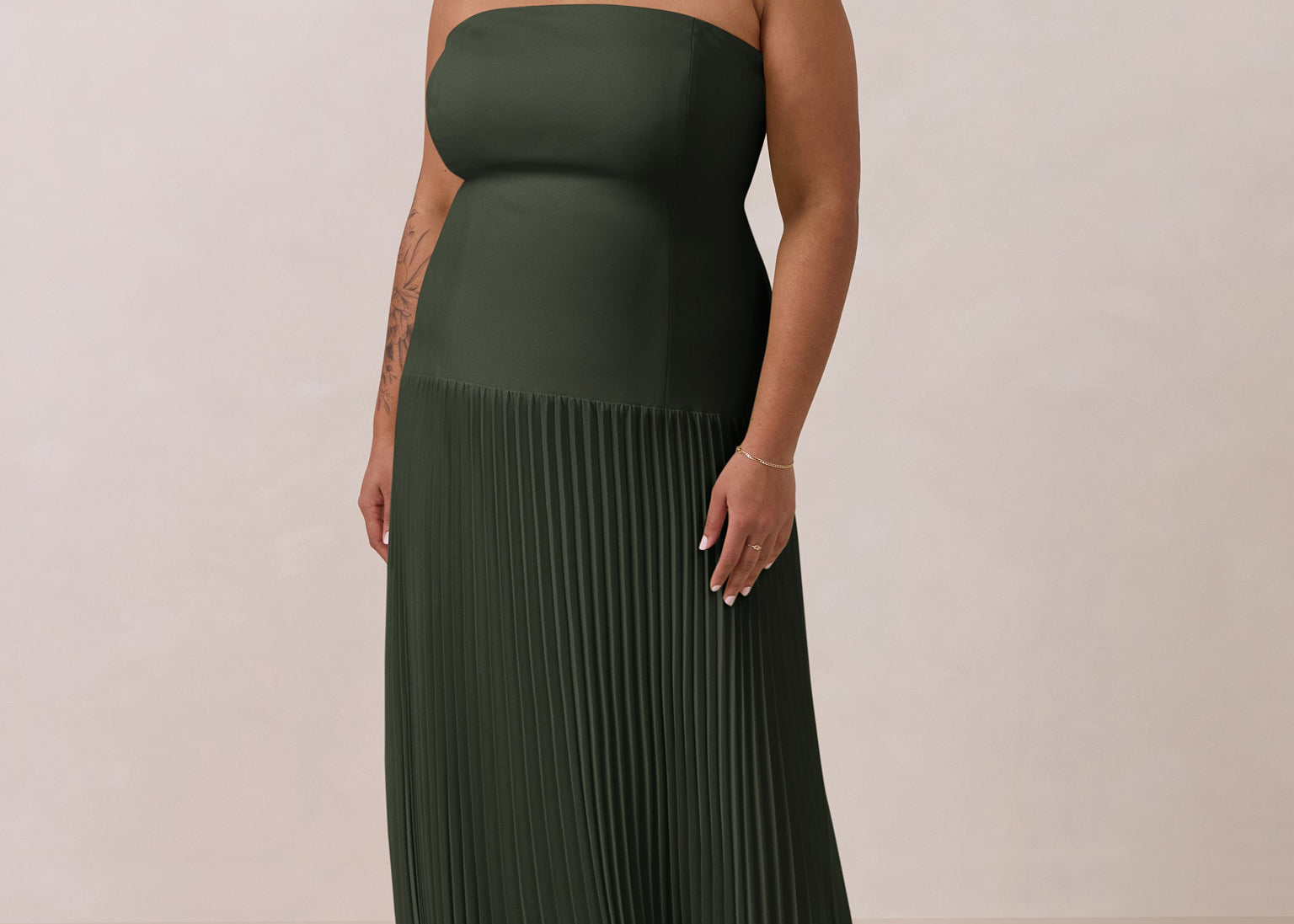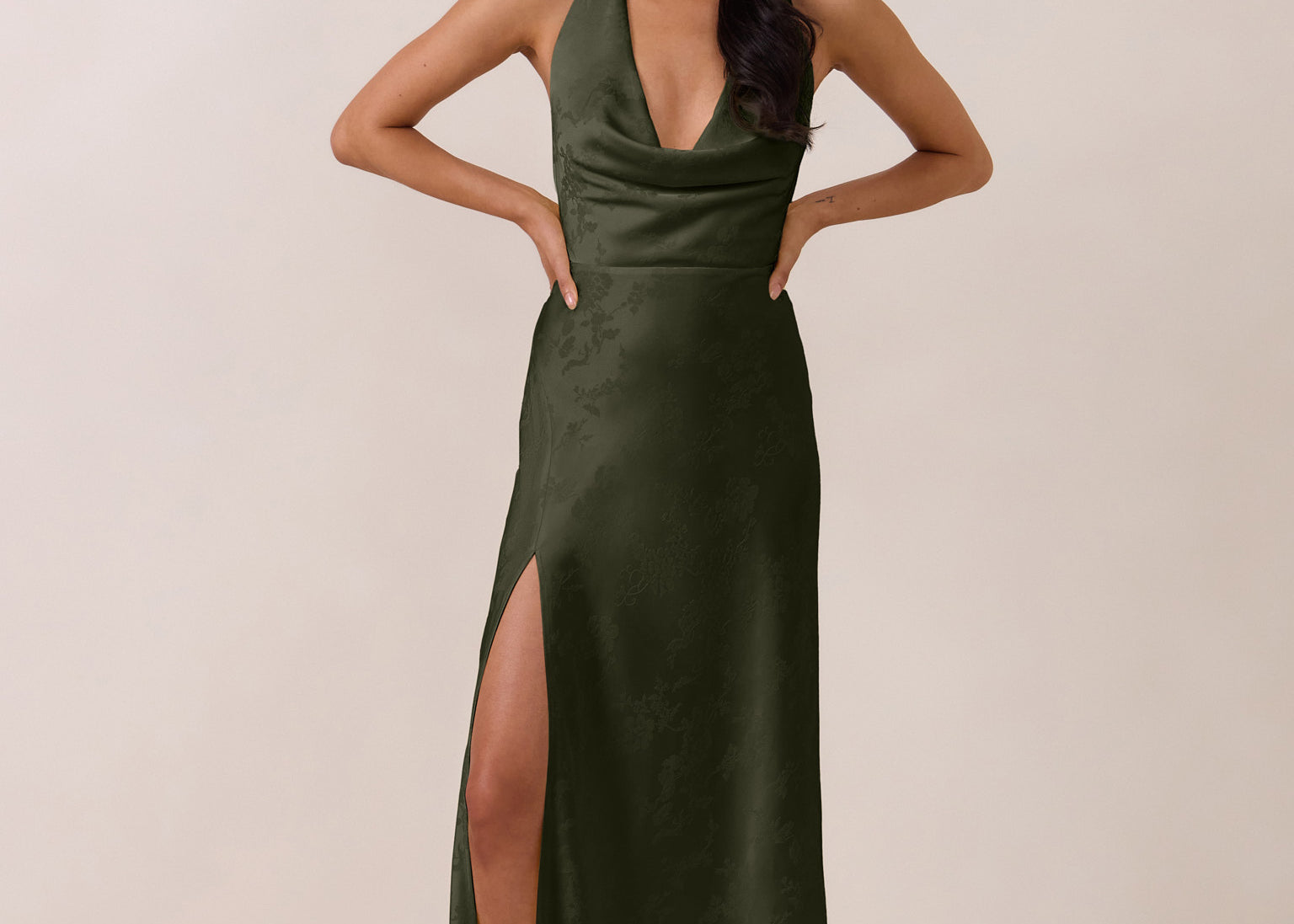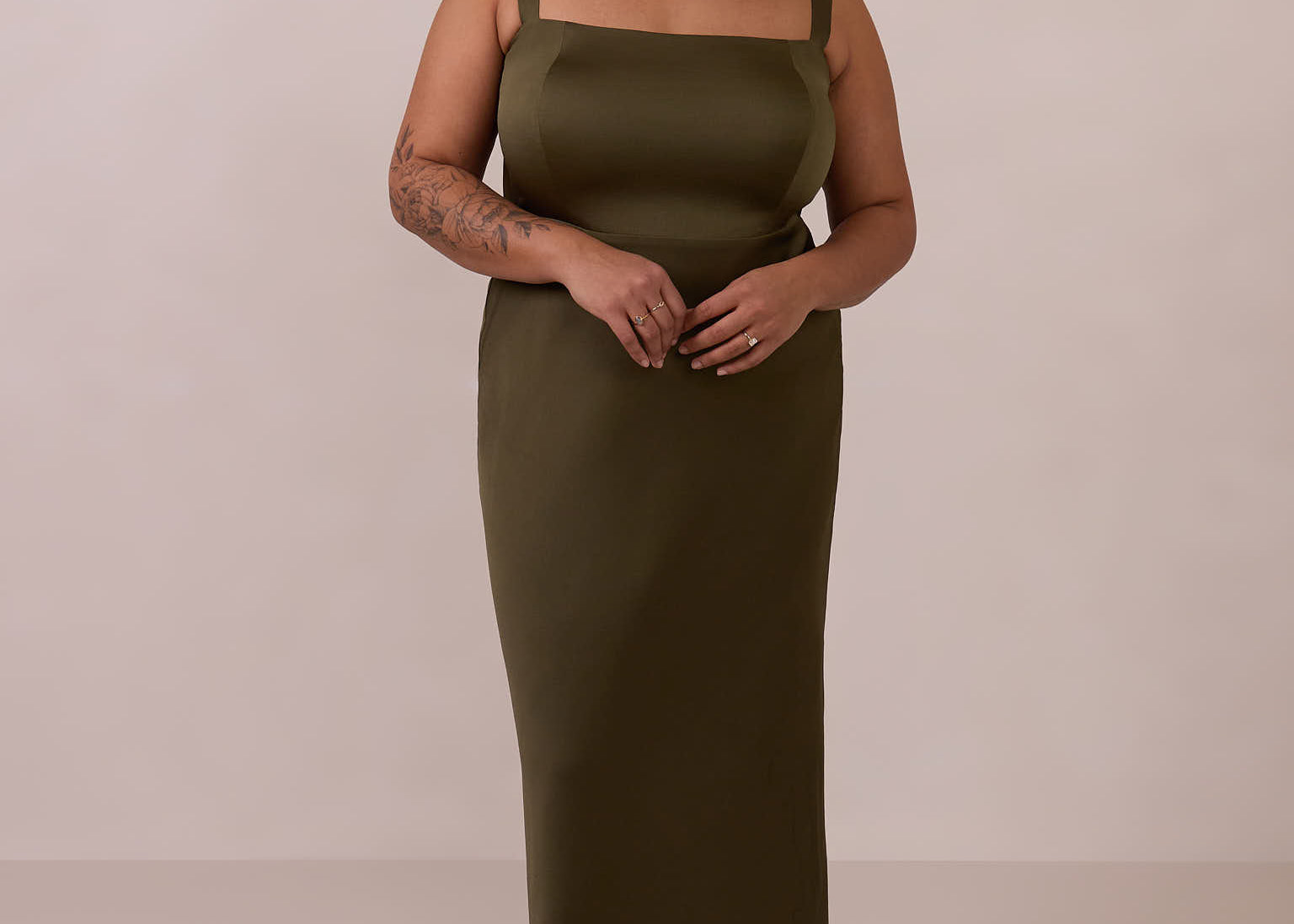 Our green palette spans delicate pale sage, warm olive tones, and bold hunter green, alongside a curated selection of romantic florals and refined prints. Many of our most popular styles are available in plus sizes up to 3X, making them ideal for mix-and-match bridal parties where bridesmaids can select a dress of her preference while looking elegantly unified together.