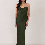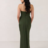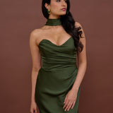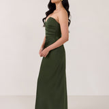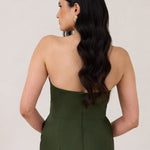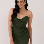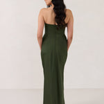 Designed with a scoop sweetheart neckline and soft pleating through the boned bodice and skirt, this dress creates a sleek, feminine silhouette. Elegant and timeless, it’s an ideal choice for weddings, receptions, or any formal occasion.