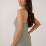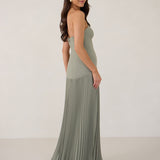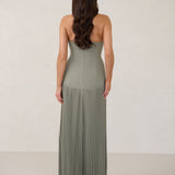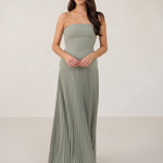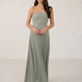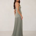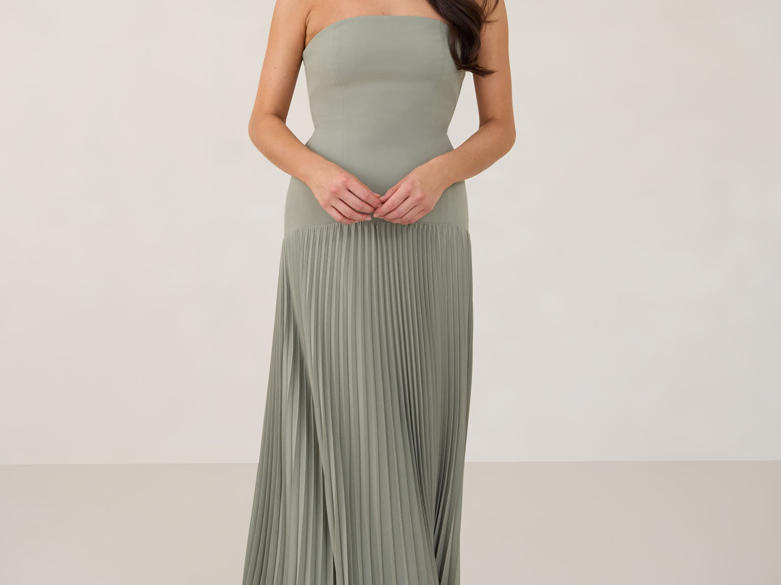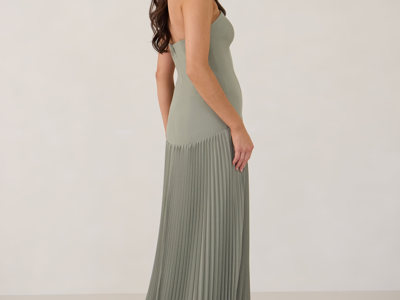 The contrast of the sleek bodice and the pleated skirt make this dress a real stunner. With boning through the bodice and into the dropped waist, and a light flowy skirt, you’ll be all set to dance the night away - twirls included.