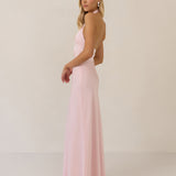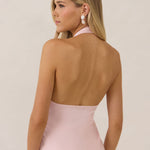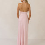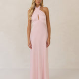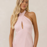 The Emery dress redefines timeless elegance with a contemporary twist. Crafted from our signature bubble satin, this full-length dress features a flattering cross-front halter neckline, creating soft drapes and a delicate keyhole detail for a touch of allure. The bias-cut skirt gracefully skims the body, ensuring comfort and a flawless silhouette that you'll want to wear repeatedly.