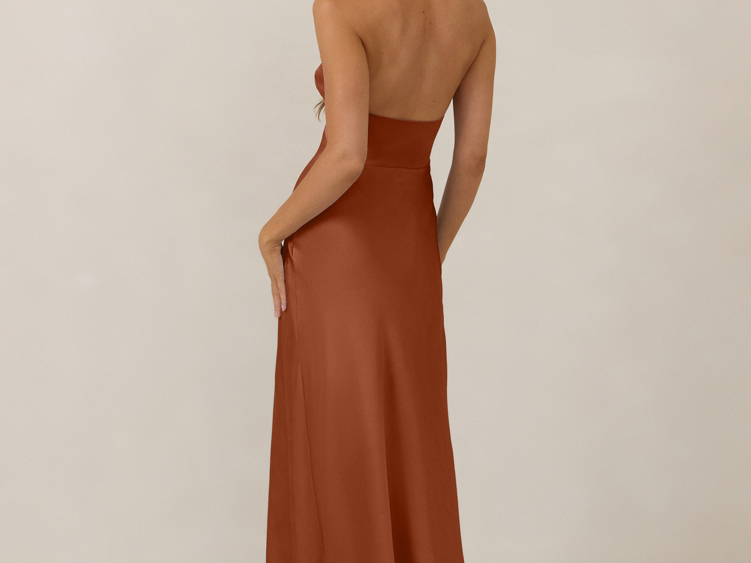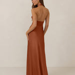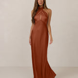The Emery dress redefines timeless elegance with a contemporary twist. Crafted from our signature bubble satin, this full-length dress features a flattering cross-front halter neckline, creating soft drapes and a delicate keyhole detail for a touch of allure. The bias-cut skirt gracefully skims the body, ensuring comfort and a flawless silhouette that you'll want to wear repeatedly.