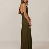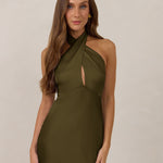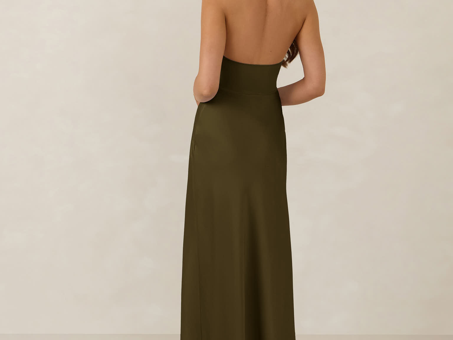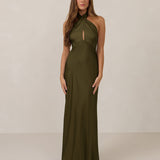 The Emery dress redefines timeless elegance with a contemporary twist. Crafted from our signature bubble satin, this full-length dress features a flattering cross-front halter neckline, creating soft drapes and a delicate keyhole detail for a touch of allure. The bias-cut skirt gracefully skims the body, ensuring comfort and a flawless silhouette that you'll want to wear repeatedly.