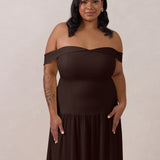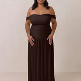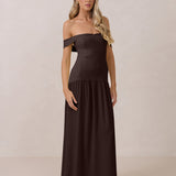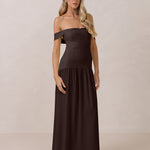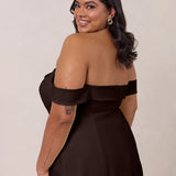 Turn heads in this breathtaking dress, featuring a romantic off-the-shoulder sweetheart neckline that elegantly frames your collarbones. The sleek, structured bodice flows seamlessly into a dropped waist and a pleated, airy skirt, creating a look that’s effortlessly sophisticated and perfectly made for dancing the night away.