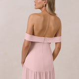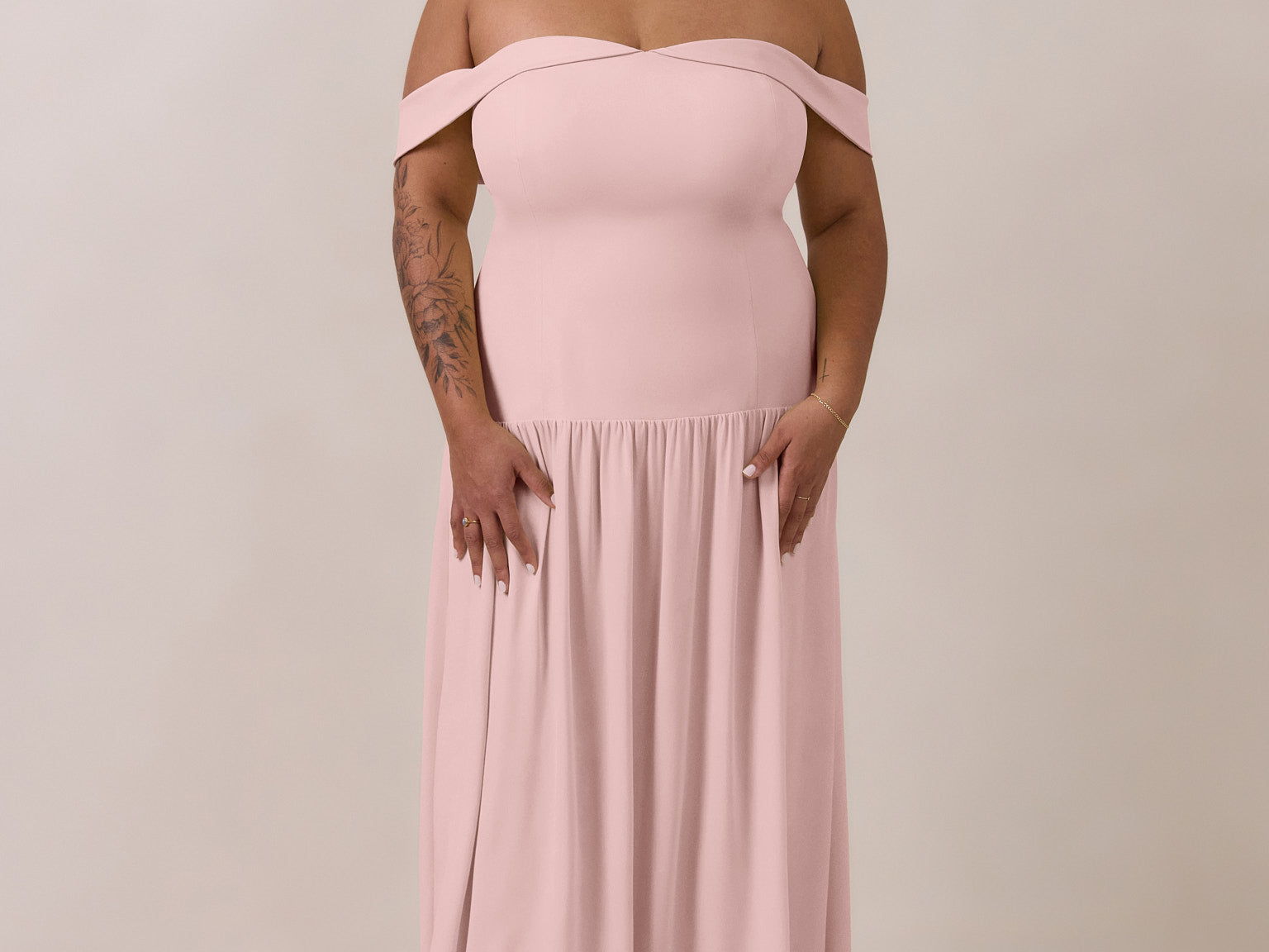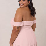 Turn heads in this breathtaking dress, featuring a romantic off-the-shoulder sweetheart neckline that elegantly frames your collarbones. The sleek, structured bodice flows seamlessly into a dropped waist and a pleated, airy skirt, creating a look that’s effortlessly sophisticated and perfectly made for dancing the night away.