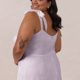 Crafted from luxurious Jacquard satin, this dress features feminine tie straps and a flattering bias-cut skirt, offering a flattering silhouette with timeless appeal.