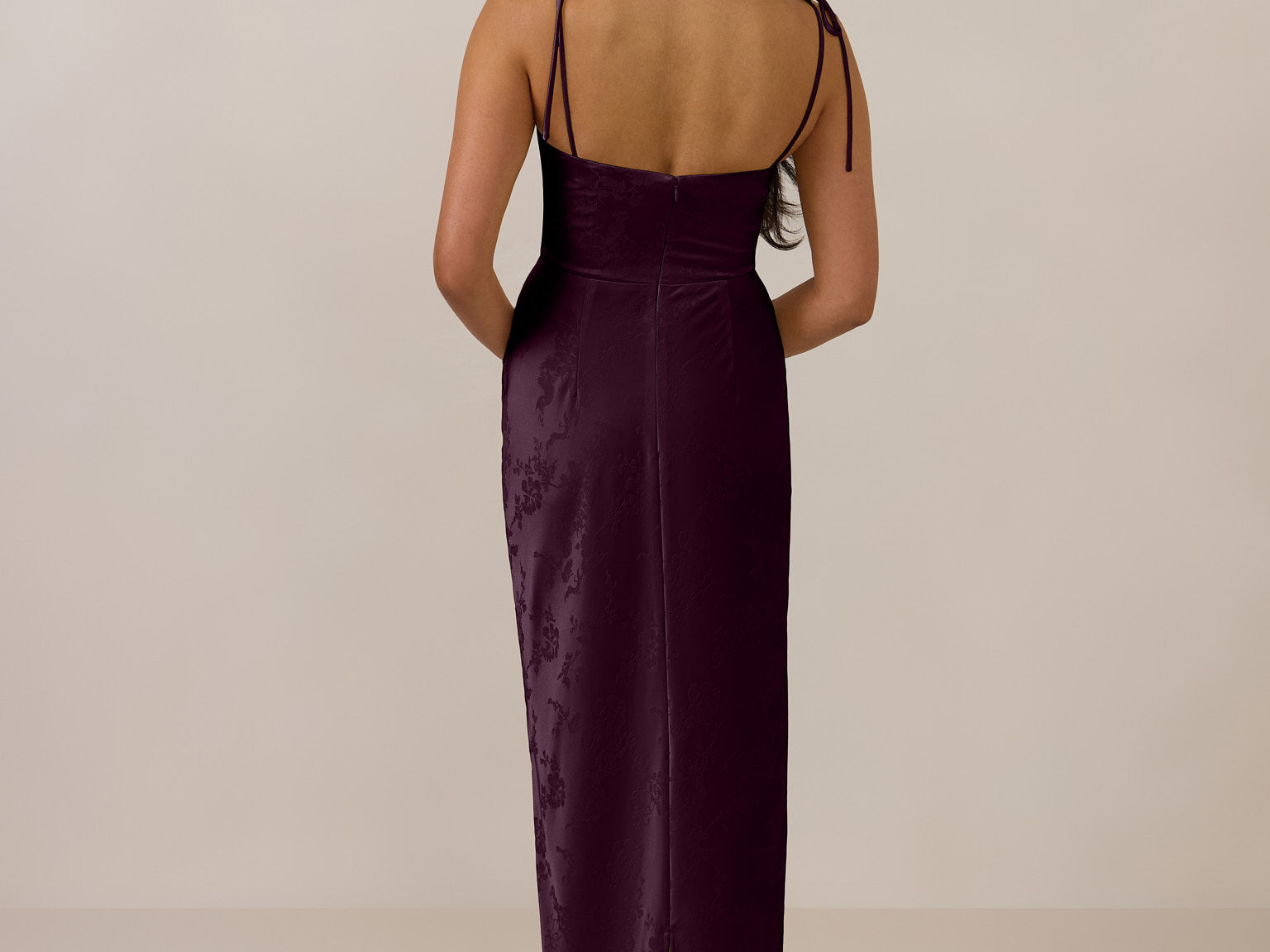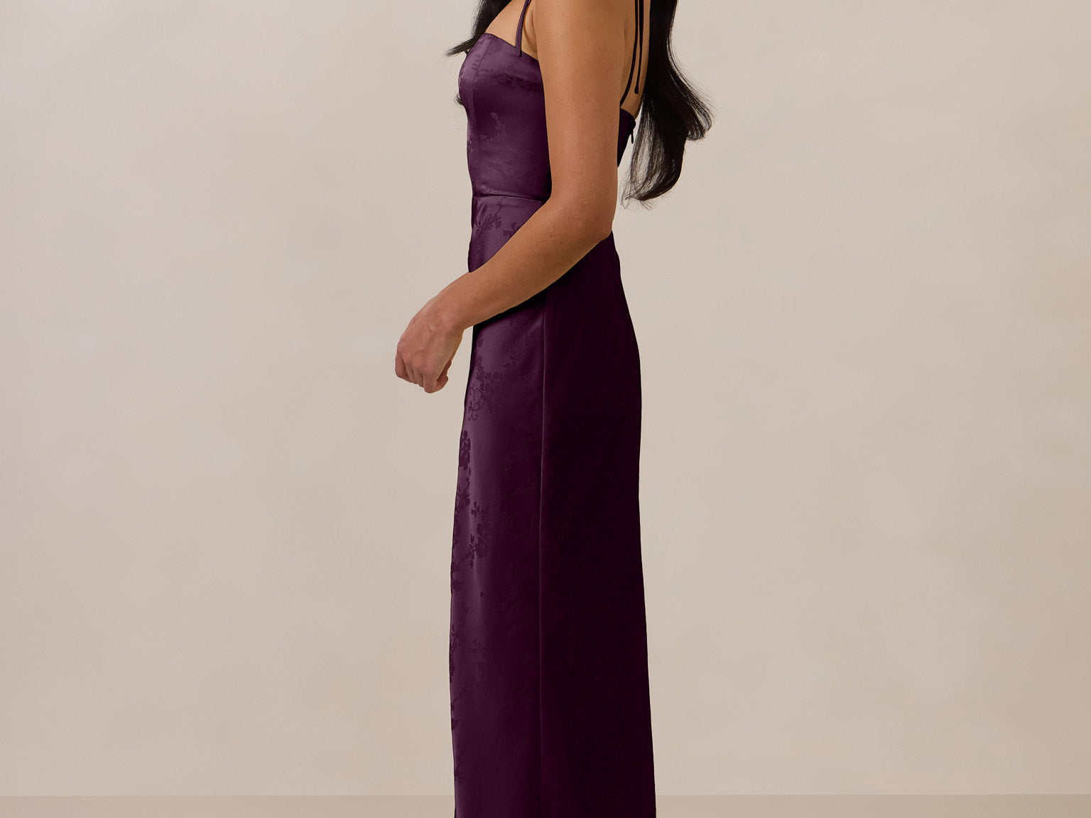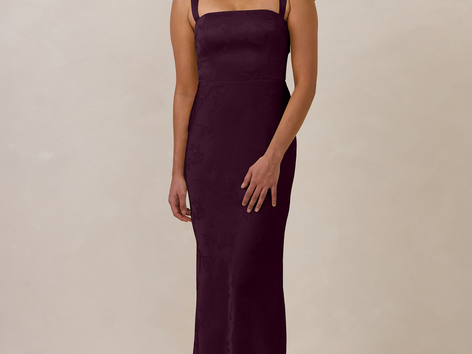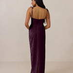 The convertible Meridian dress offers understated sophistication with a floor-grazing silhouette and a back slit for graceful movement. Featuring a structured bodice for a sculpted fit, the design includes interchangeable straps that can be styled thin, thick, or strapless. This versatile and elegant piece is designed to provide quiet confidence for any occasion.