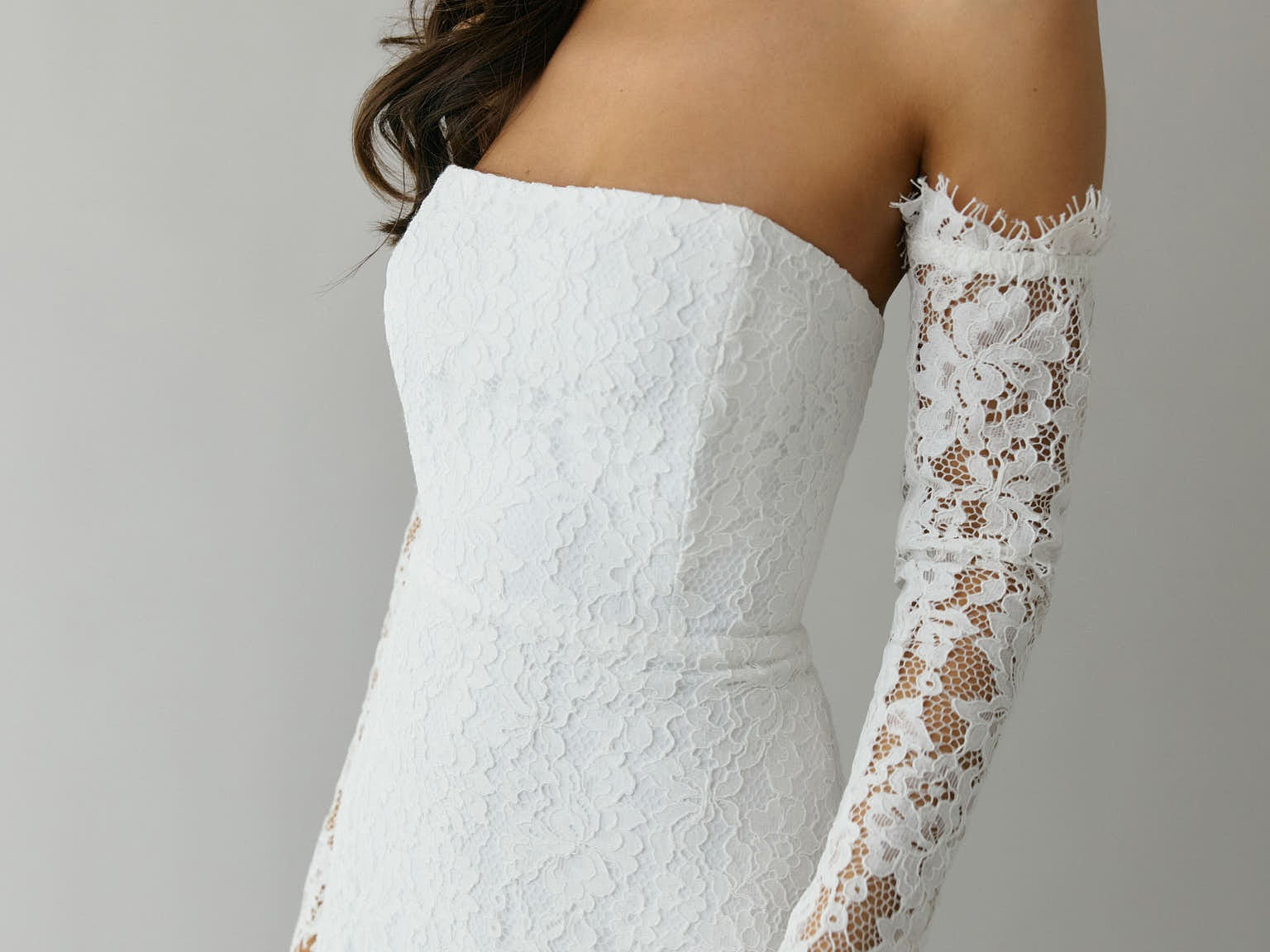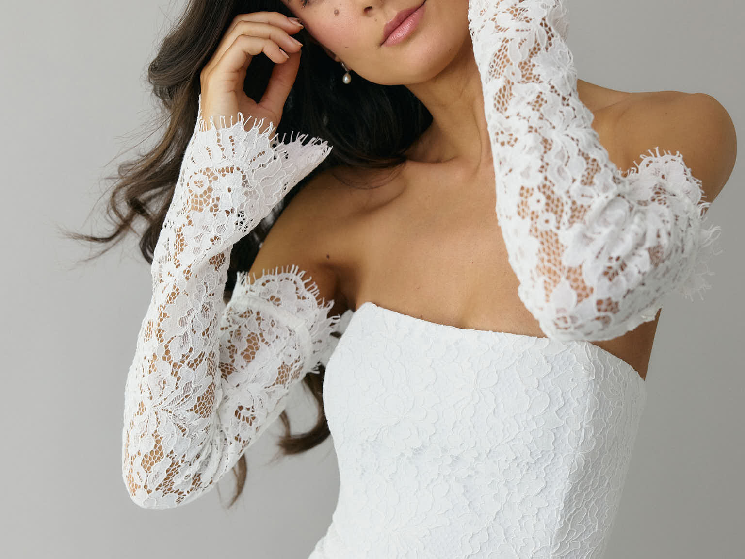The Minford Sleeves are a detachable accessory designed to add a romantic touch to any strapless White Collection style.