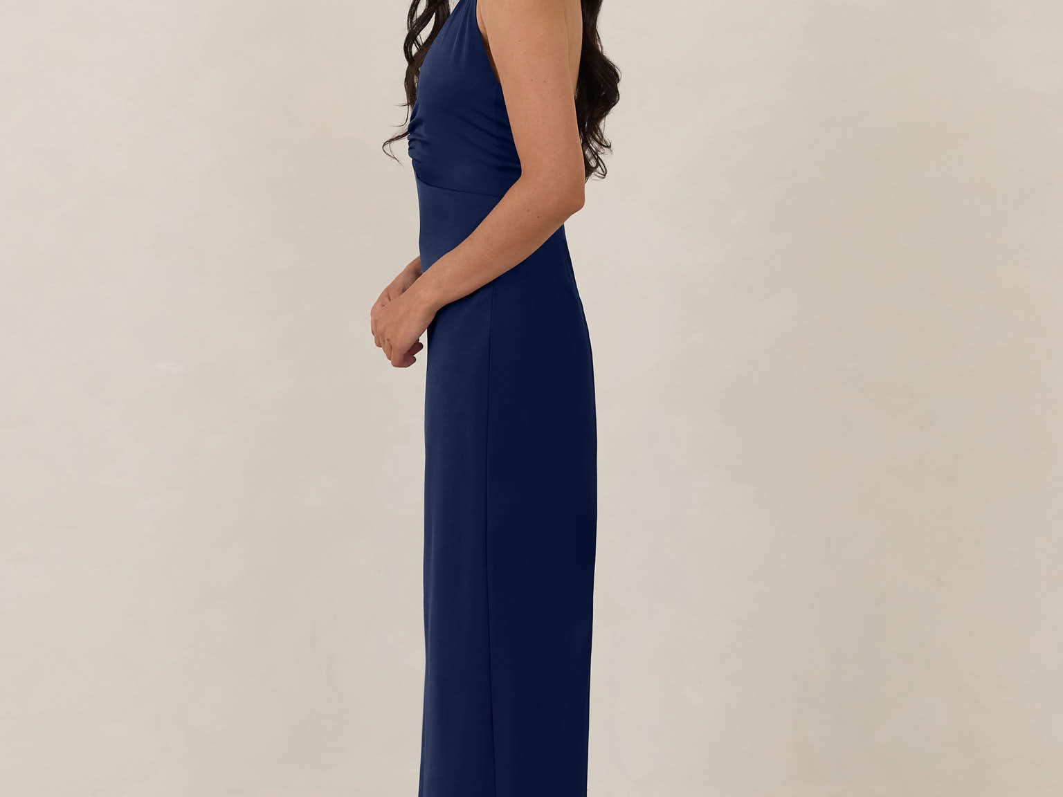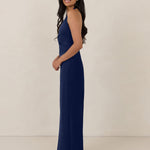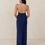 The perfect balance between bold and refined, this satin halter dress is designed to turn heads with quiet confidence. Featuring a plunging halter neckline that highlights the neck and collarbone, it's finished with a cinched detail at the bust to enhance shape and create a beautifully flattering silhouette.
