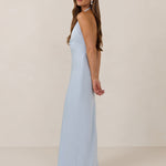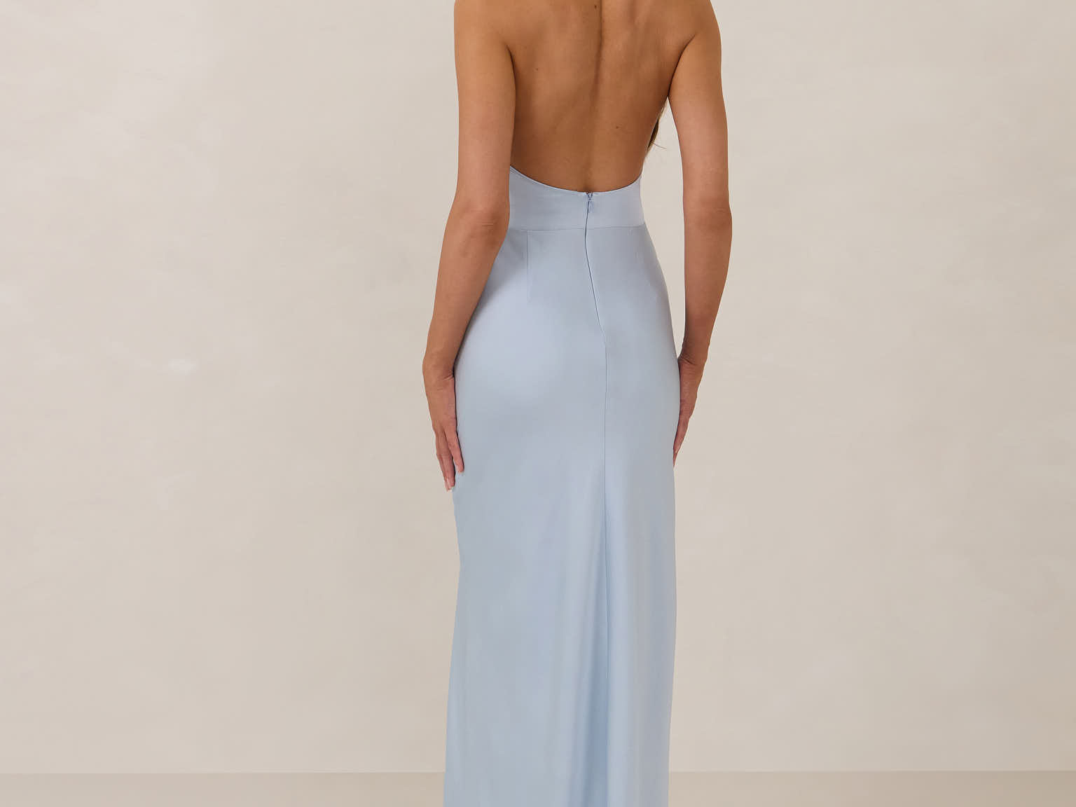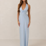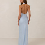The perfect balance between bold and refined, this satin halter dress is designed to turn heads with quiet confidence. Featuring a plunging halter neckline that highlights the neck and collarbone, it's finished with a cinched detail at the bust to enhance shape and create a beautifully flattering silhouette.