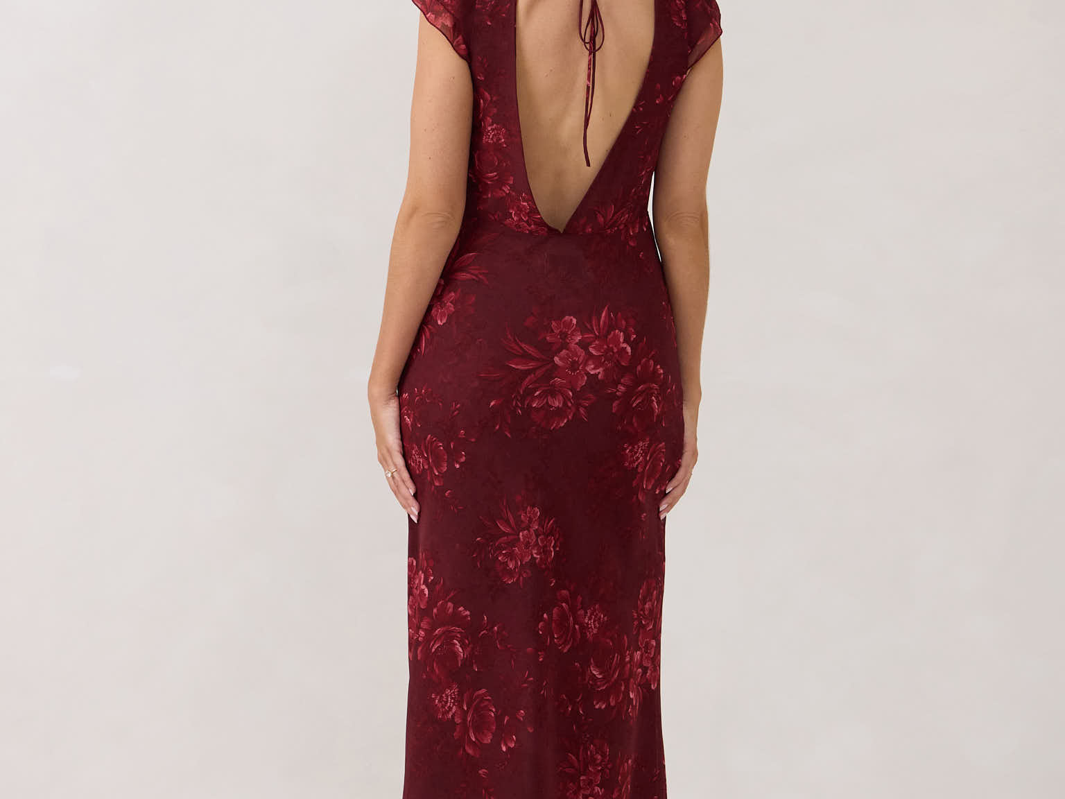 - Open back with tie detail