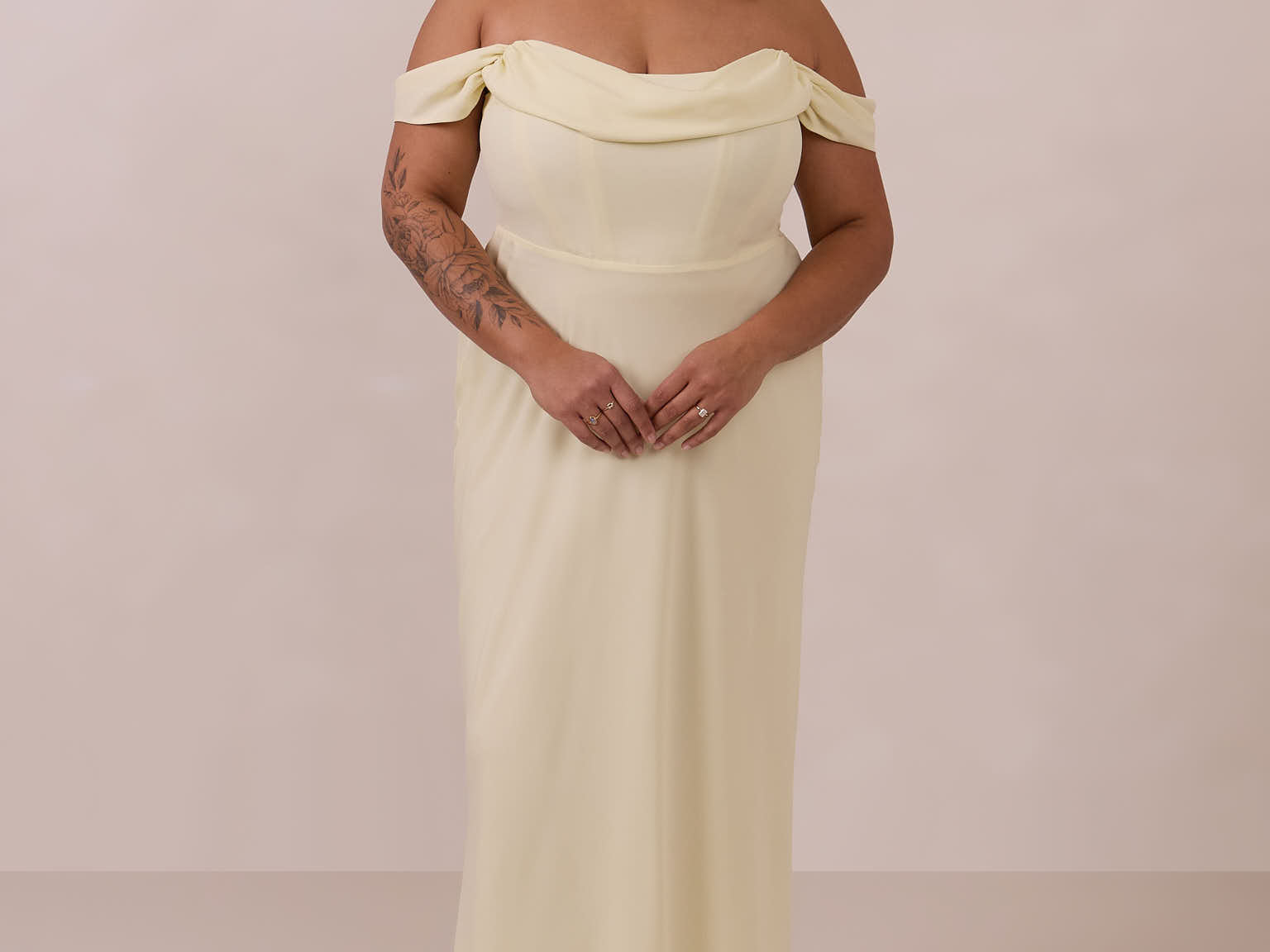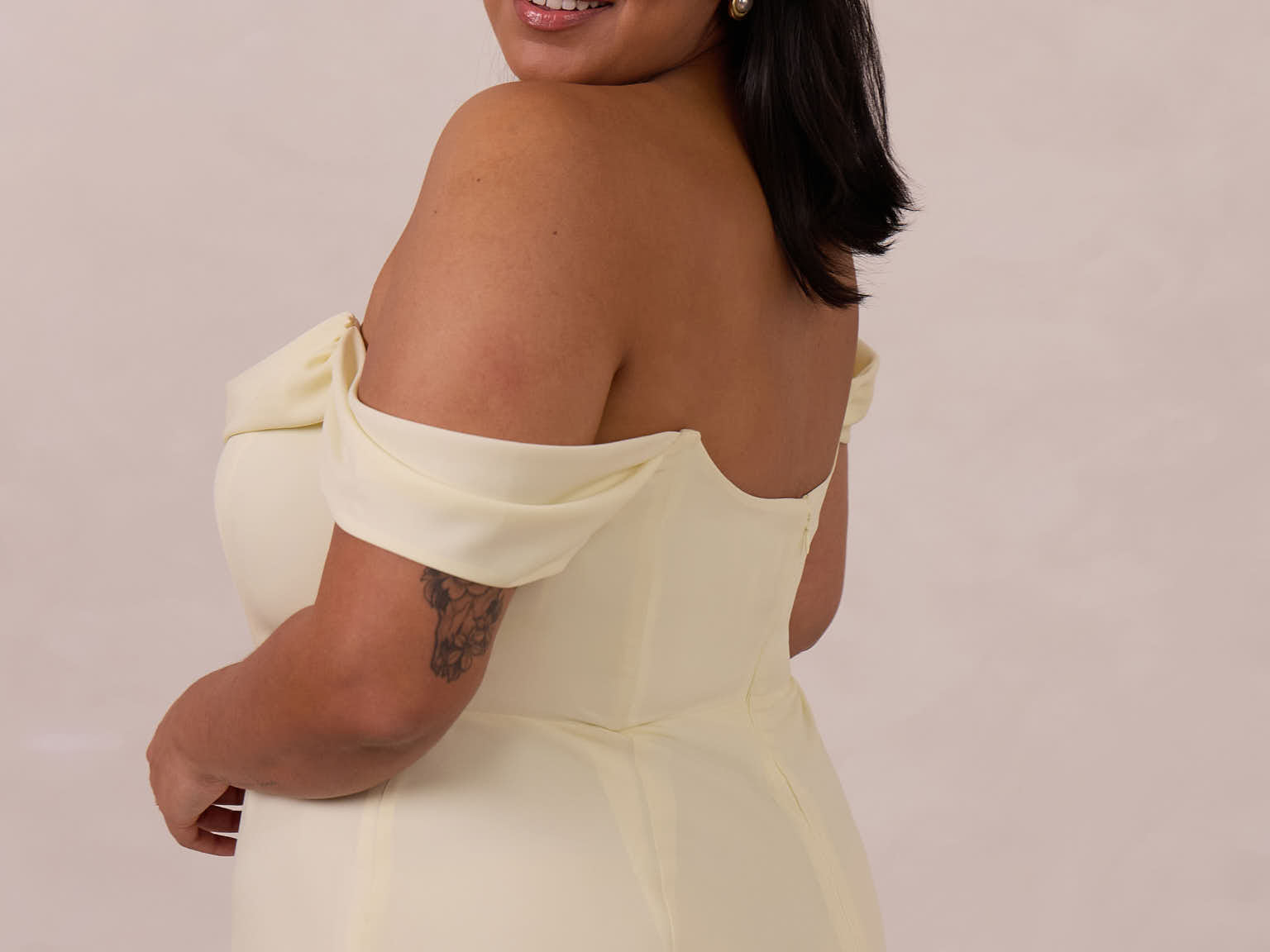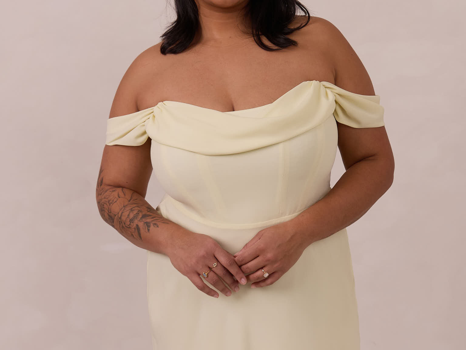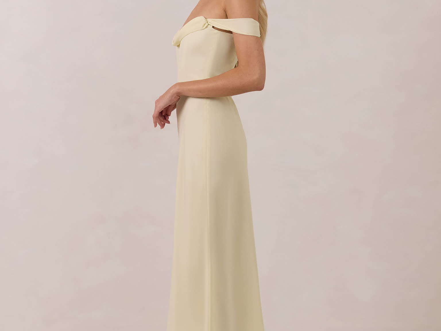 The Sutton Dress is the definition of effortless elegance. Designed with a soft draped chiffon neckline and delicate off-the-shoulder sleeves, it strikes the perfect balance between romance and refinement.