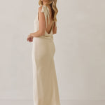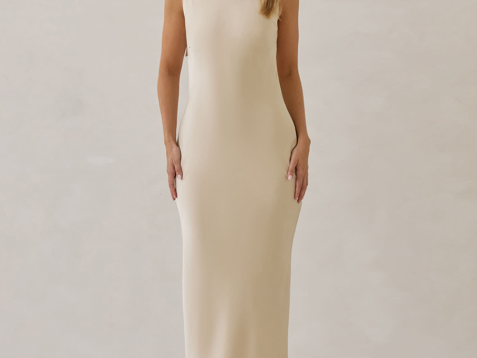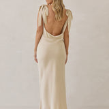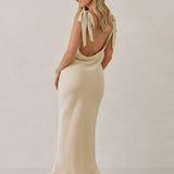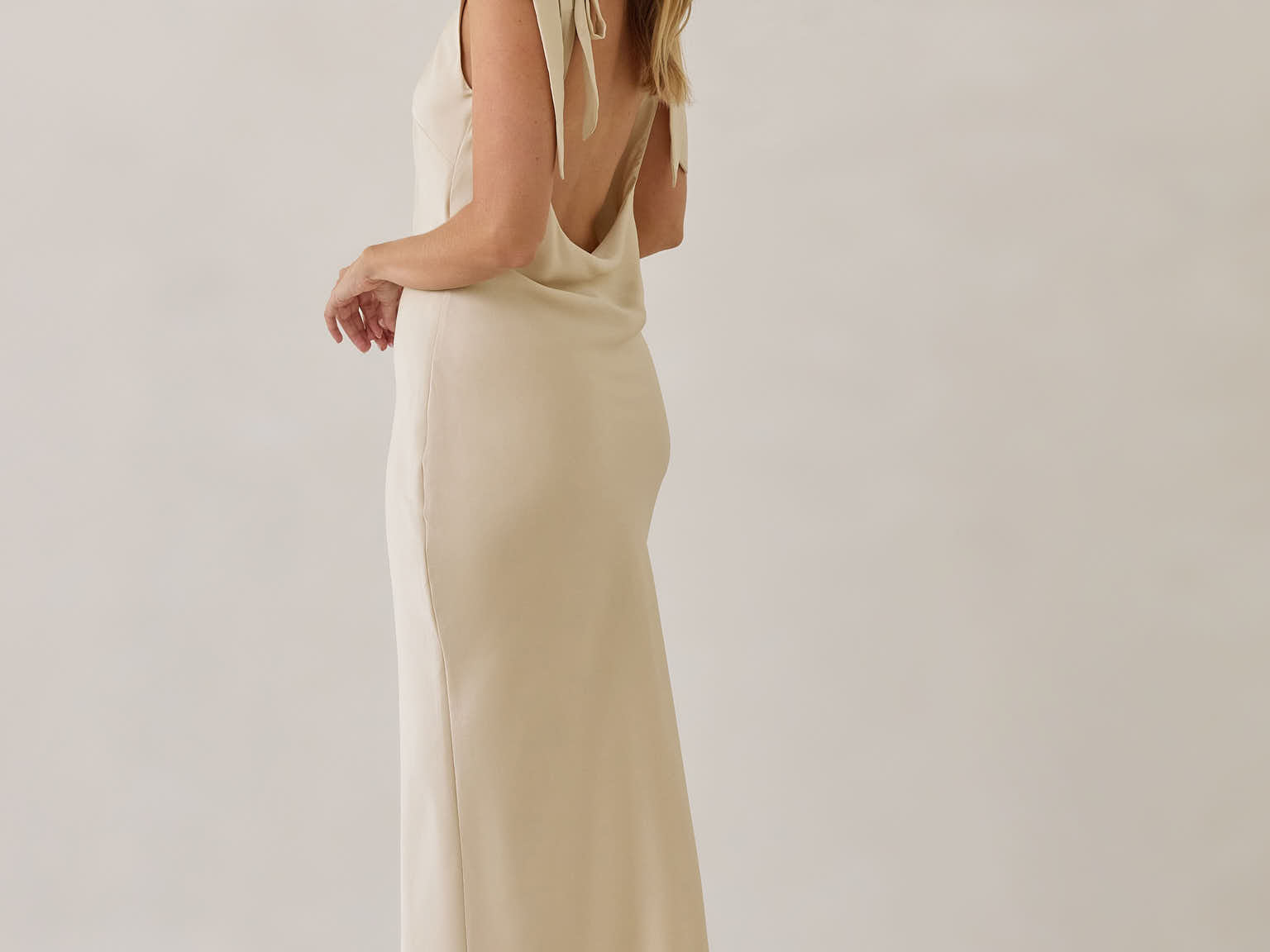 A true classic beauty - the sleek and simple front paired with the striking open, cowl back and tie straps is a match made in heaven.