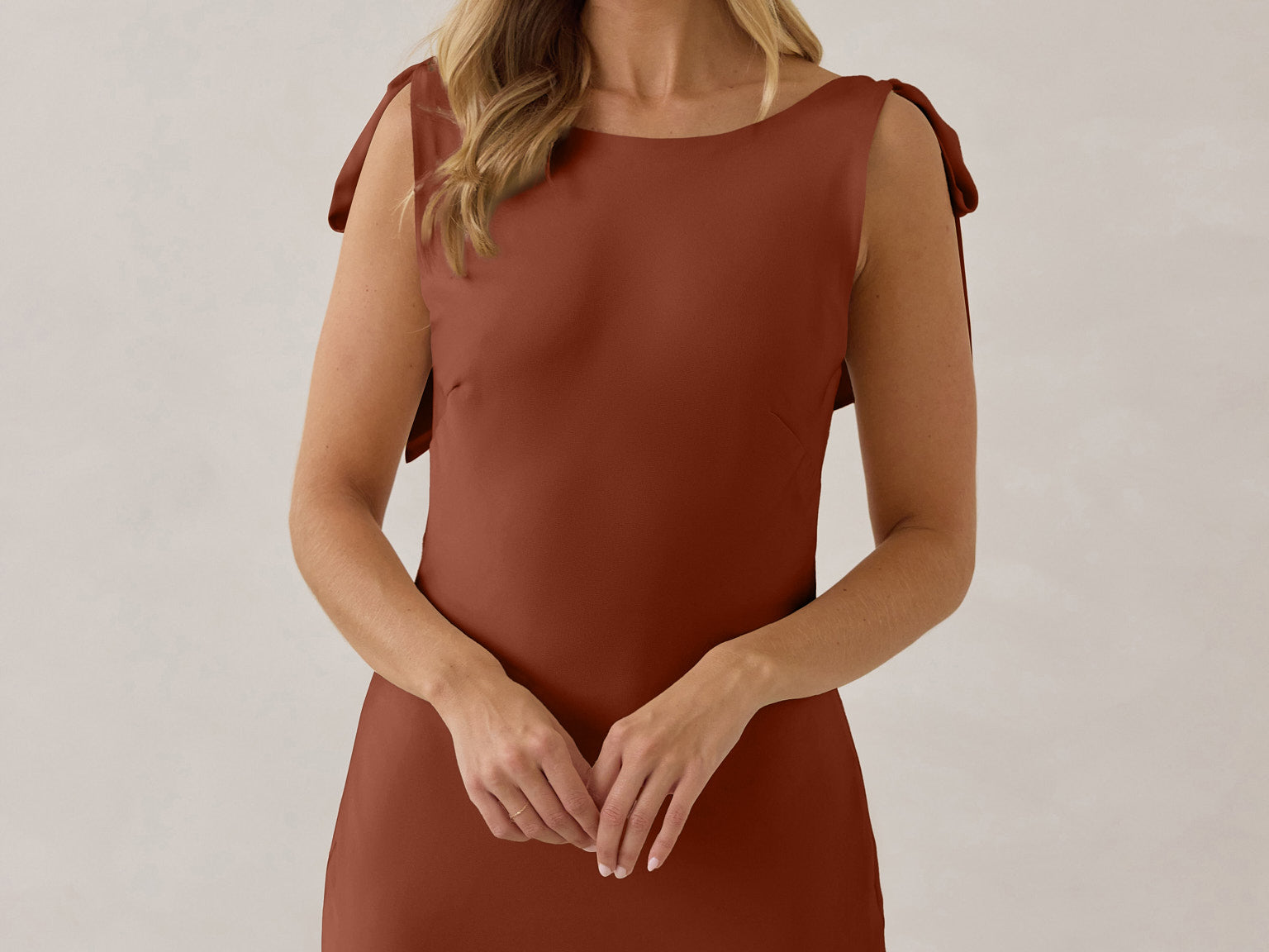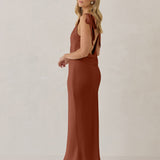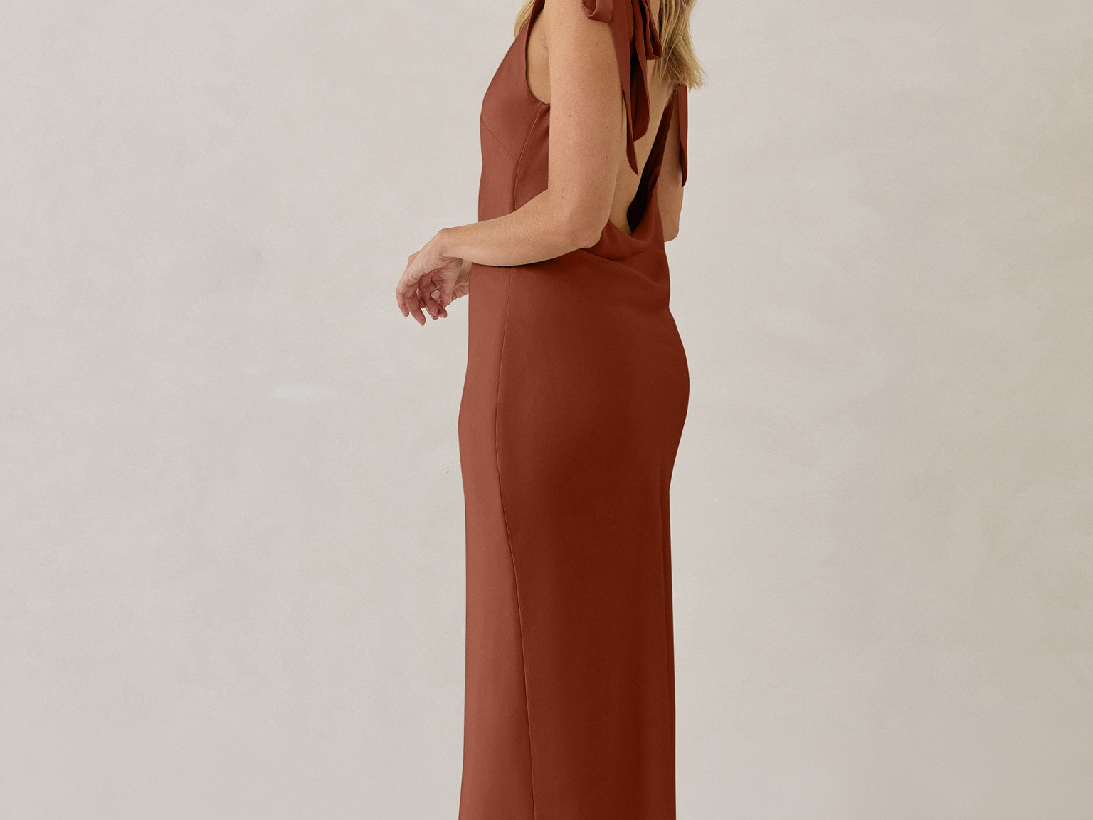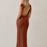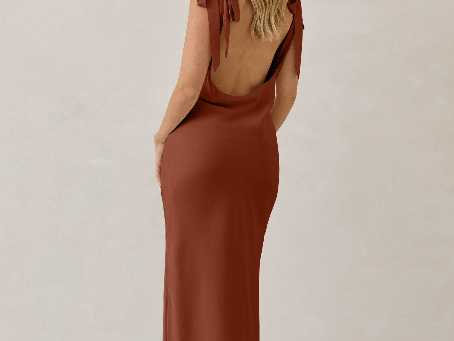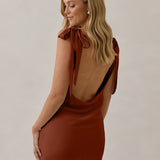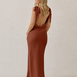 A true classic beauty - the sleek and simple front paired with the striking open, cowl back and tie straps is a match made in heaven.