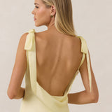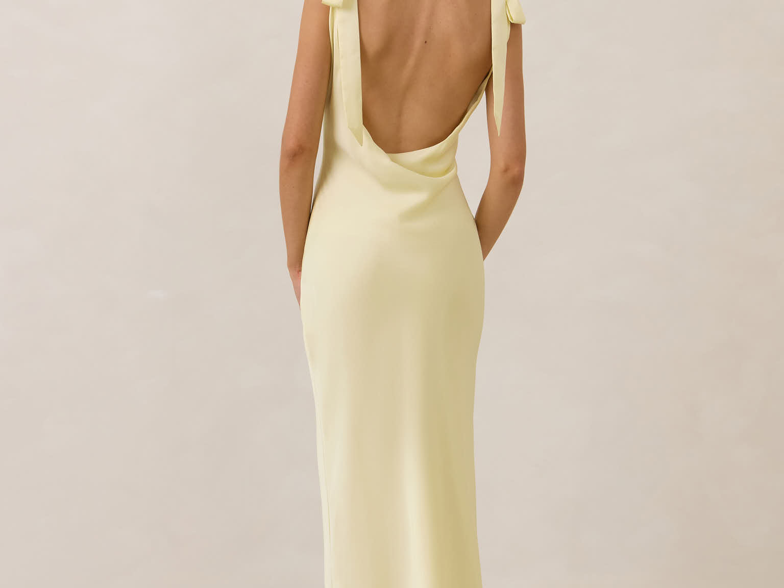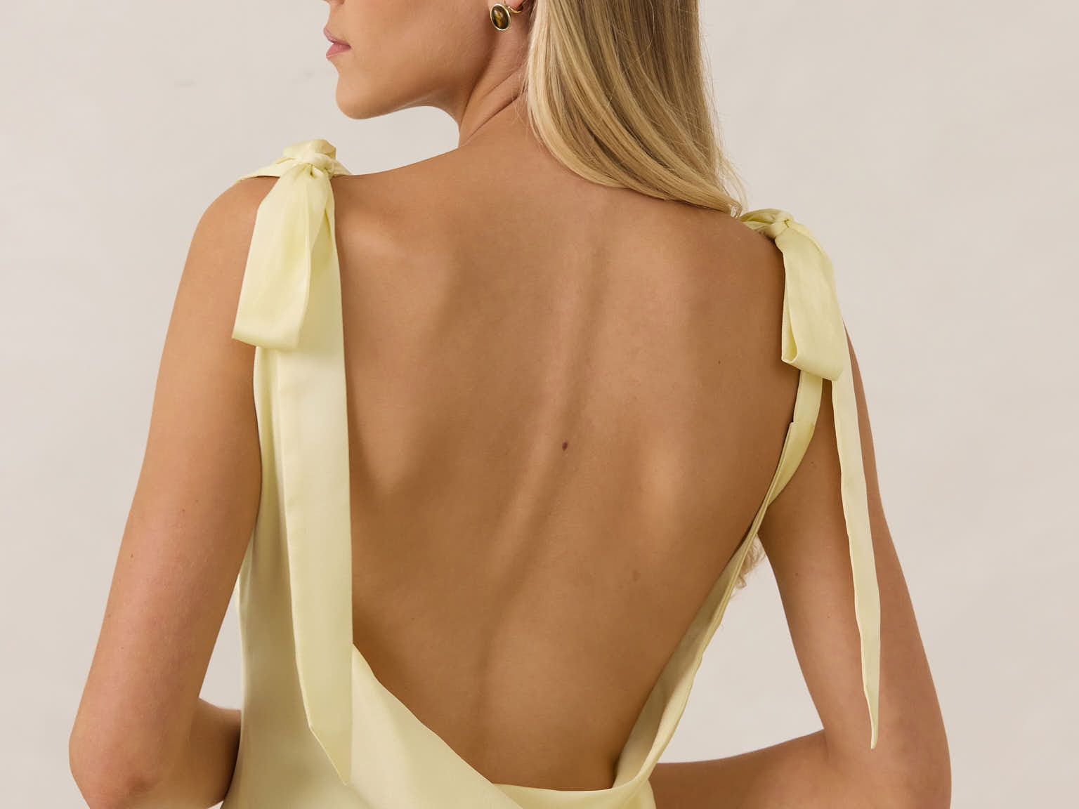 A true classic beauty - the sleek and simple front paired with the striking open, cowl back and tie straps is a match made in heaven.