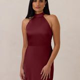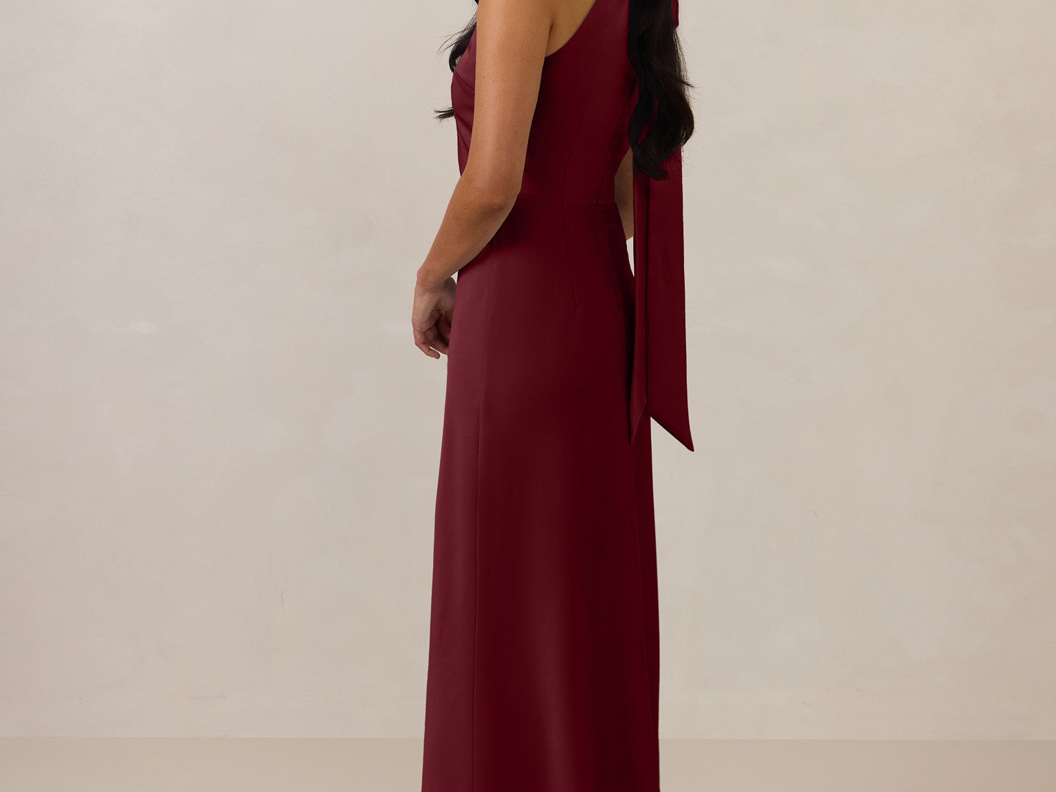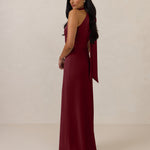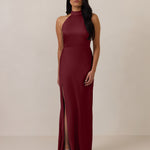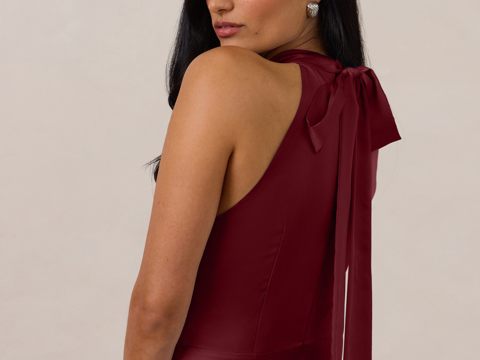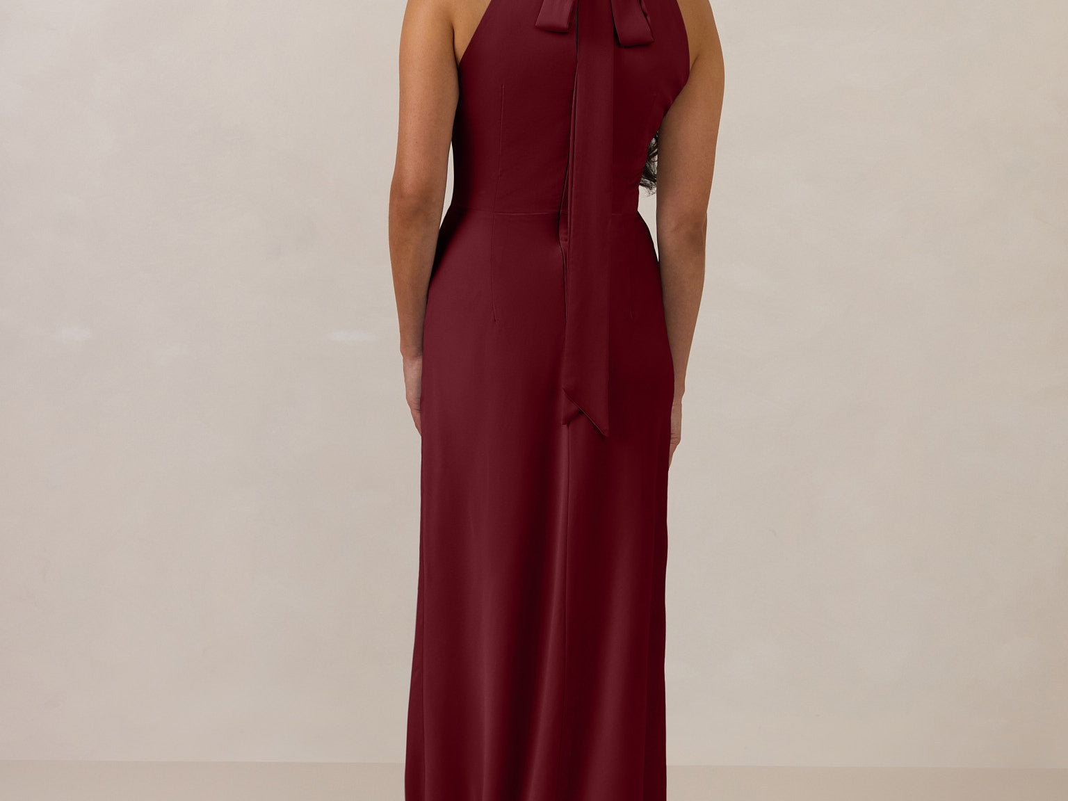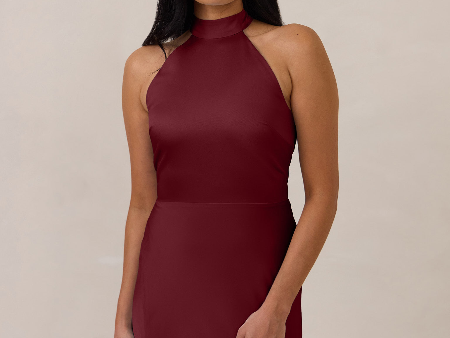 Meet the Porter Dress—a full-length satin gown designed with effortless elegance in mind. The sleek high neckline features an elongated self-tie that can be styled in a knot or left to drape for a refined, minimal look. Cut in fluid satin that skims the body, the gown falls into a straight silhouette finished with a front slit for easy movement. Timeless, polished, and made for any moment that calls for something elevated.