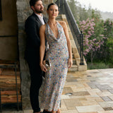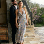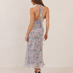 Effortlessly chic cowl neck design crafted from soft chiffon. Featuring a bias-cut tea length skirt, this dress offers a flattering, flowing silhouette that moves with ease. Perfect for any occasion.