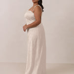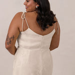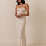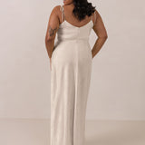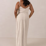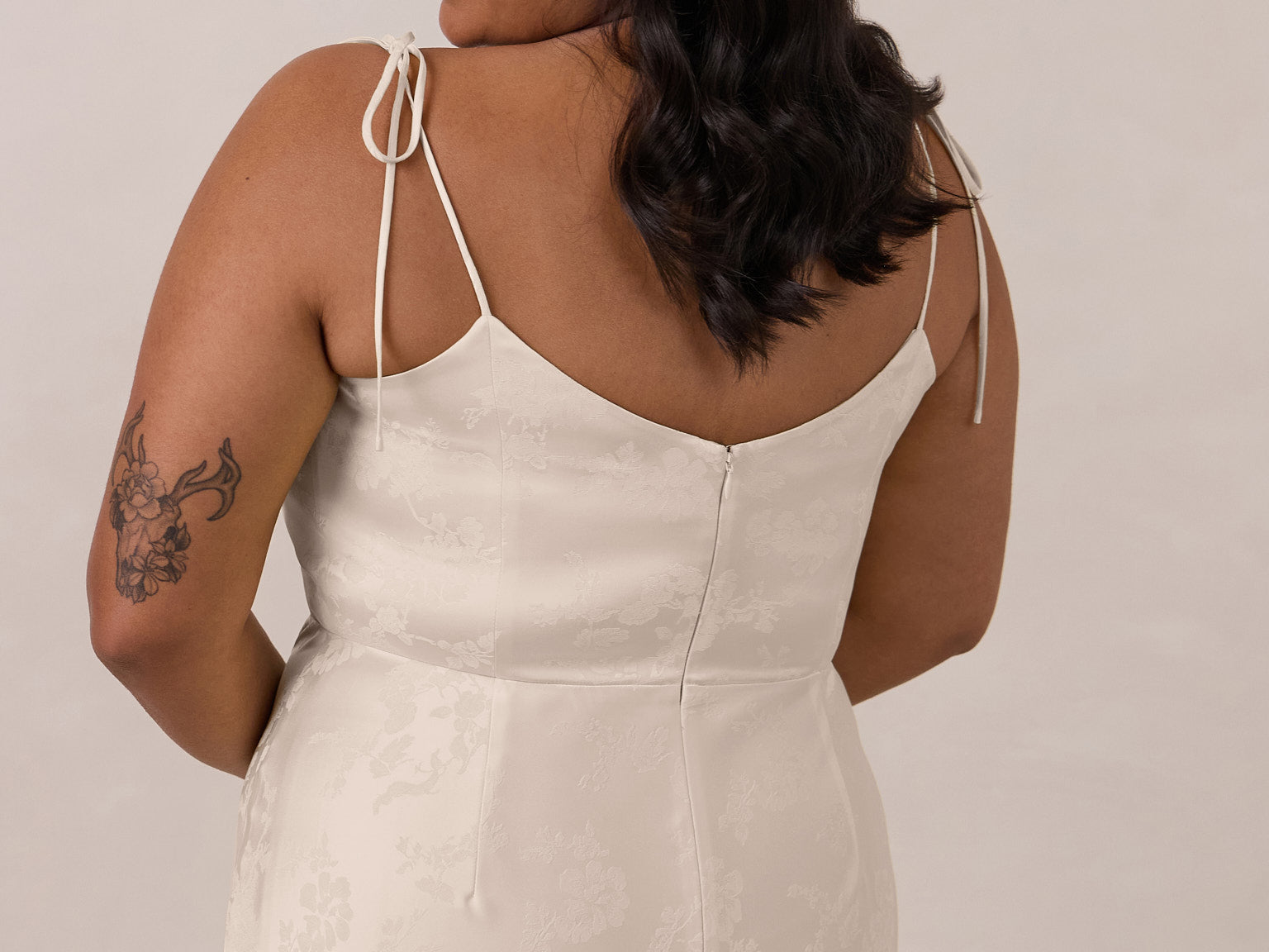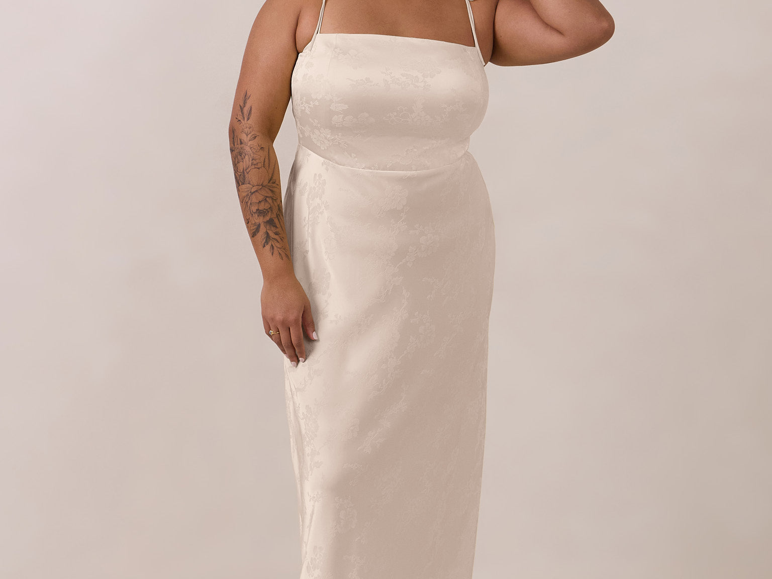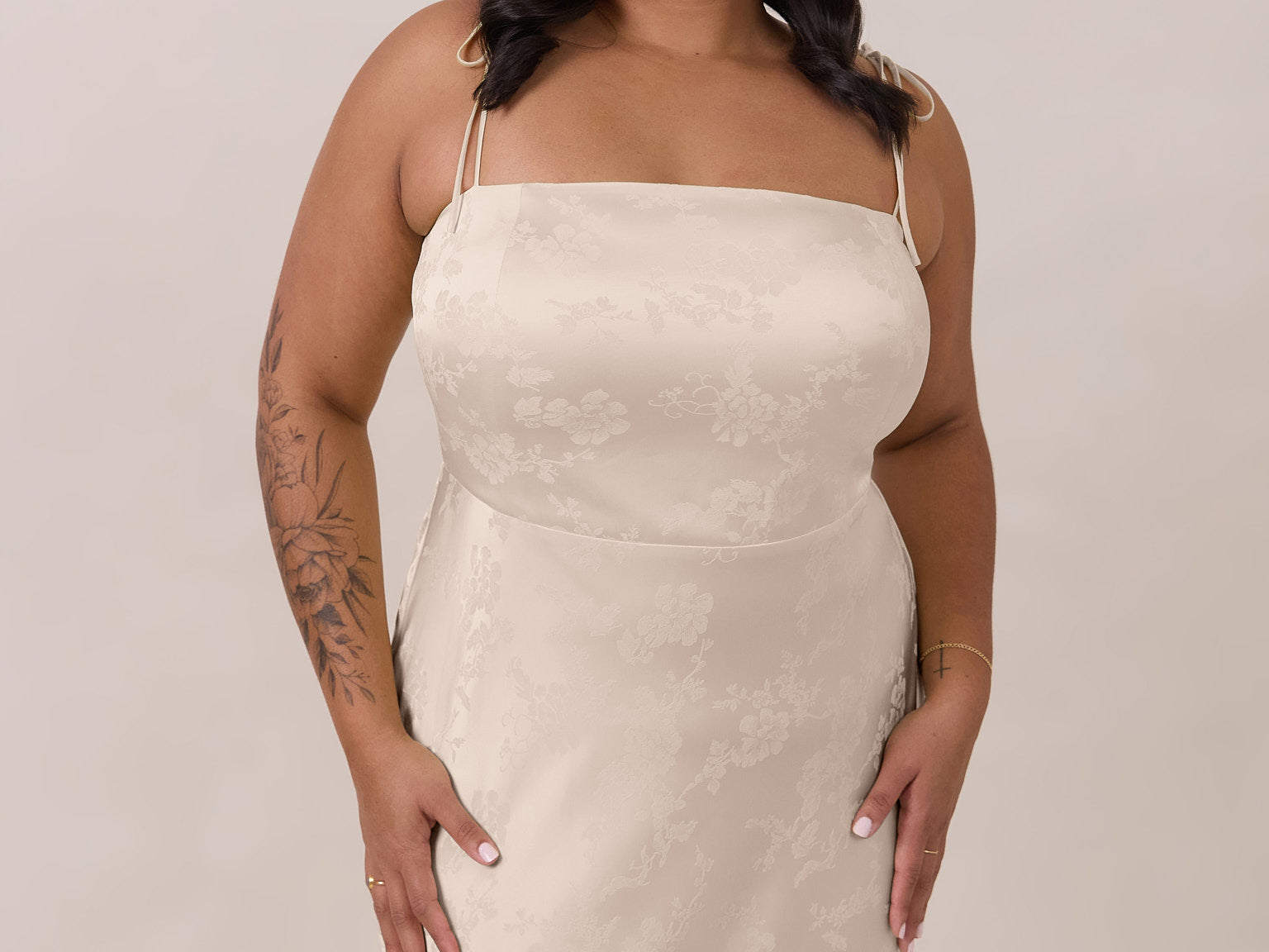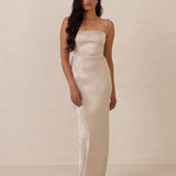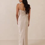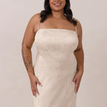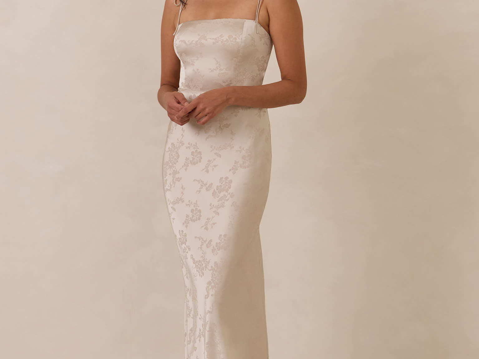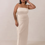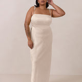 The Beckett dress embodies understated sophistication. Its floor-grazing silhouette flows effortlessly, complemented by a subtle back slit for added movement and a modern touch. Featuring a softly structured bodice and adjustable tie straps, it ensures both comfort and a tailored fit, making it perfect for any occasion requiring quiet confidence.