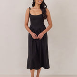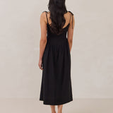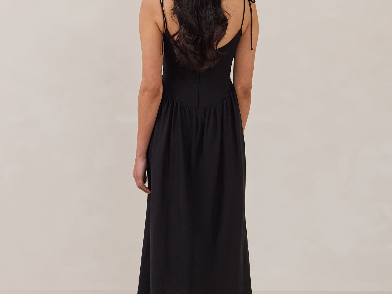Your go-to for easy summer days. Made from breathable Palma, it features a soft scoop neckline, delicate tie straps, and a fitted bodice that flows into a gathered skirt with natural movement. Perfect for anything from market strolls to weekend plans.