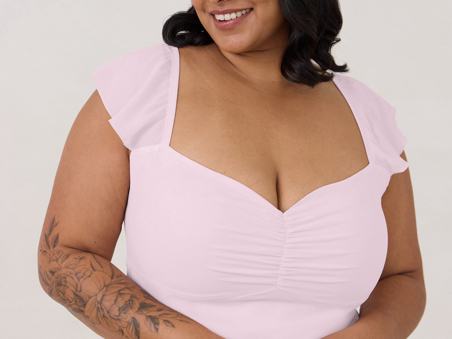 - Fitted sweetheart bodice