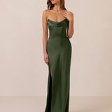 The Prescott Dress is the definition of effortless elegance. Designed with a soft draped chiffon neckline and delicate off-the-shoulder straps, it strikes the perfect balance between romance and refinement. For added versatility, the straps are removable, allowing you to easily switch up your look.