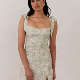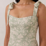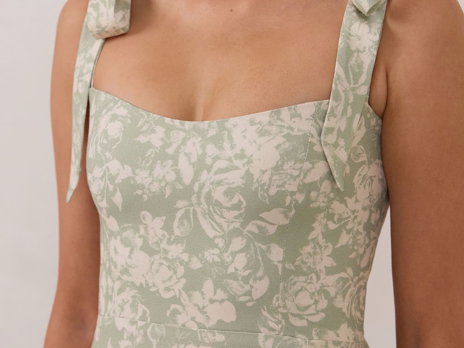 A clean, modern silhouette made for warm-weather. It features adjustable tie straps, a slim-fitting skirt with a side slit, and an invisible side zipper for a seamless finish. Lined and cut to a mini length, it’s a flattering, unfussy style that does more with less.