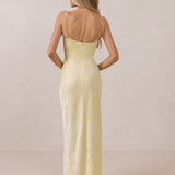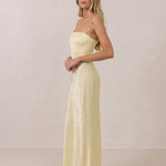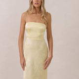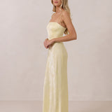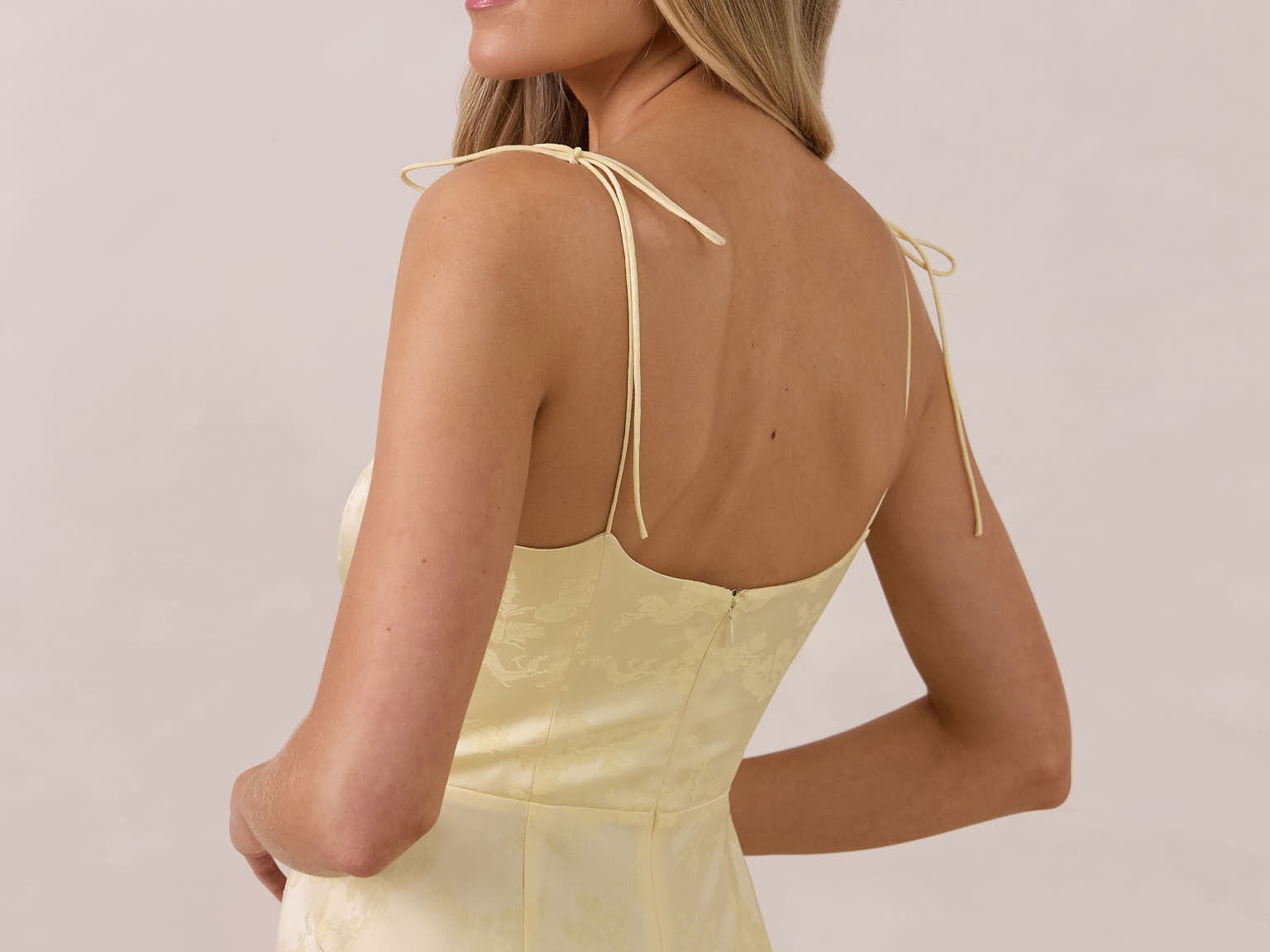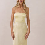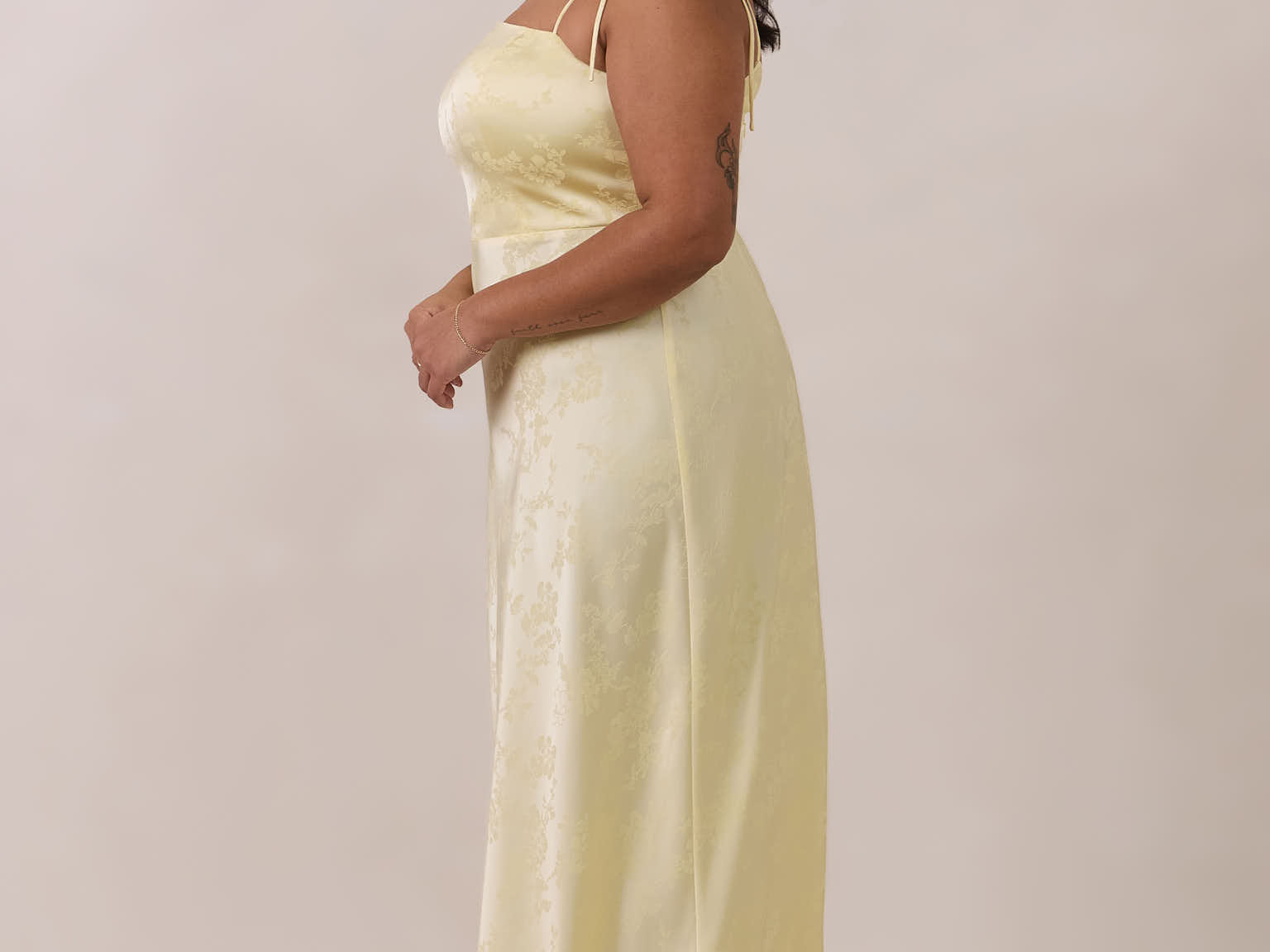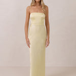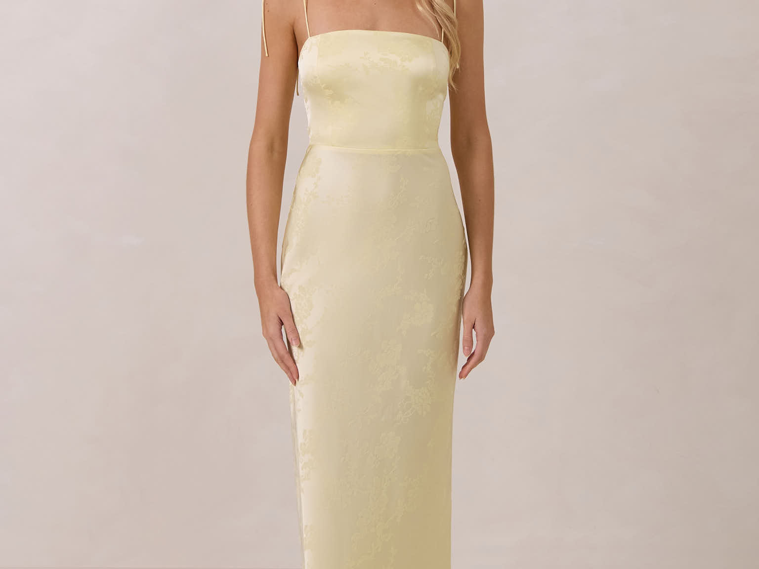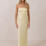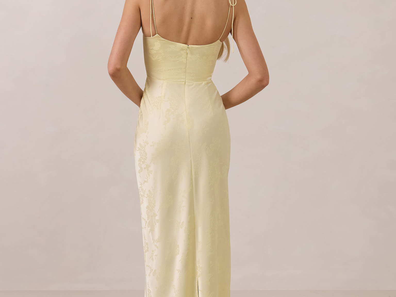 The Beckett dress embodies understated sophistication. Its floor-grazing silhouette flows effortlessly, complemented by a subtle back slit for added movement and a modern touch. Featuring a softly structured bodice and adjustable tie straps, it ensures both comfort and a tailored fit, making it perfect for any occasion requiring quiet confidence.