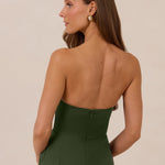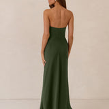 Designed with a scoop sweetheart neckline and soft pleating through the boned bodice and skirt, this dress creates a sleek, feminine silhouette. Elegant and timeless, it’s an ideal choice for weddings, receptions, or any formal occasion.