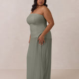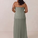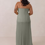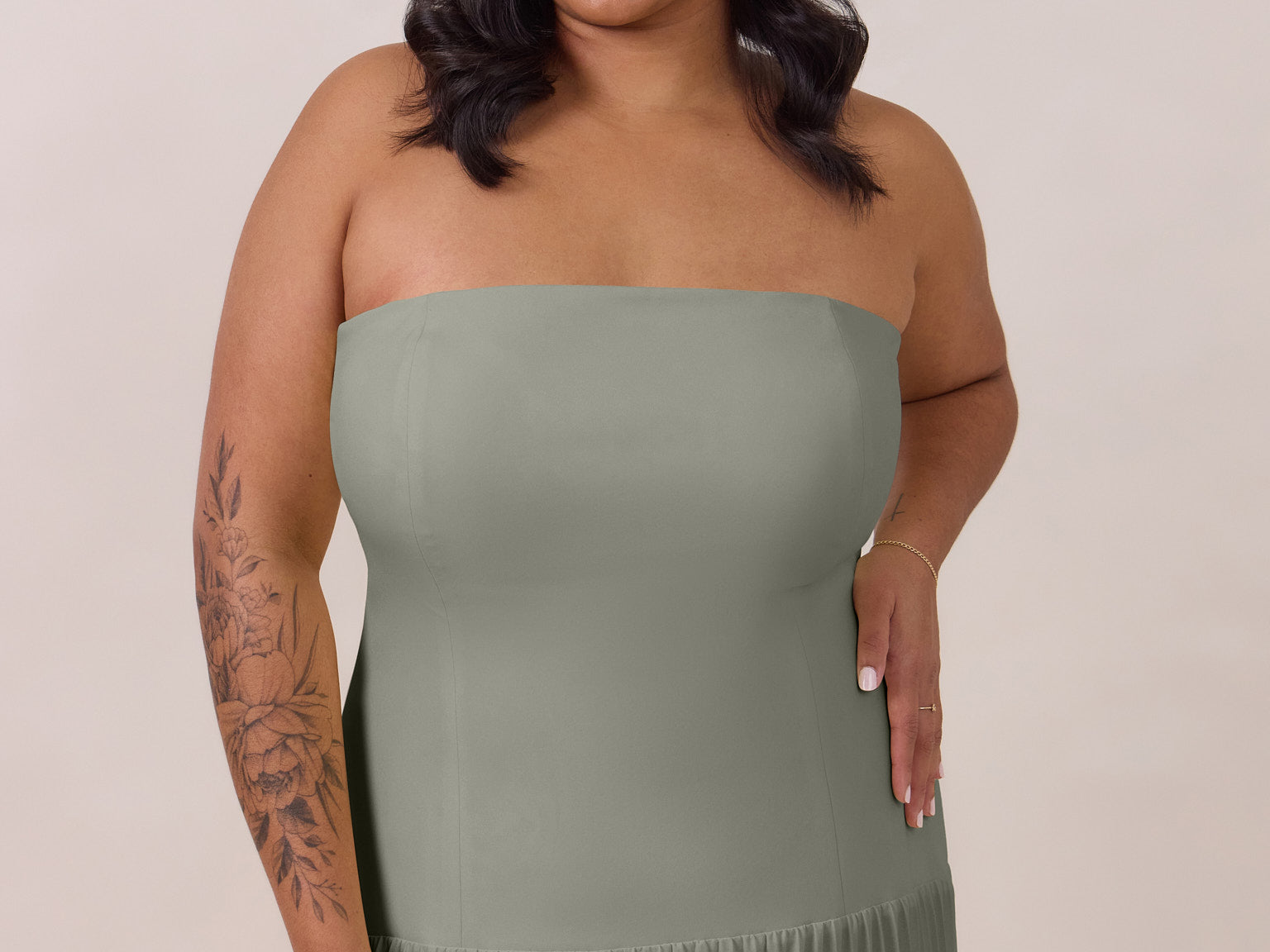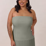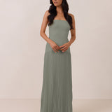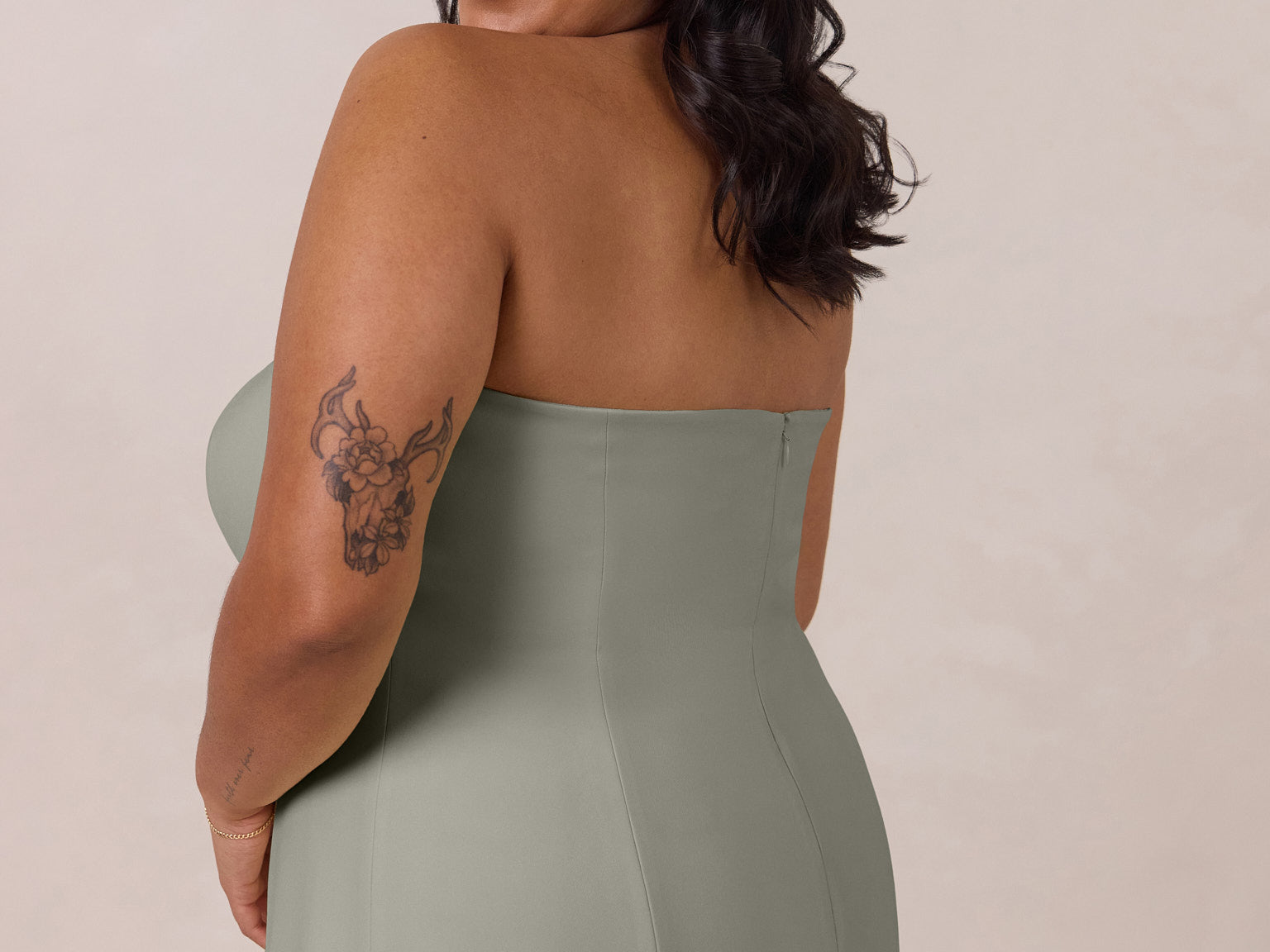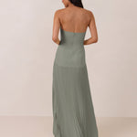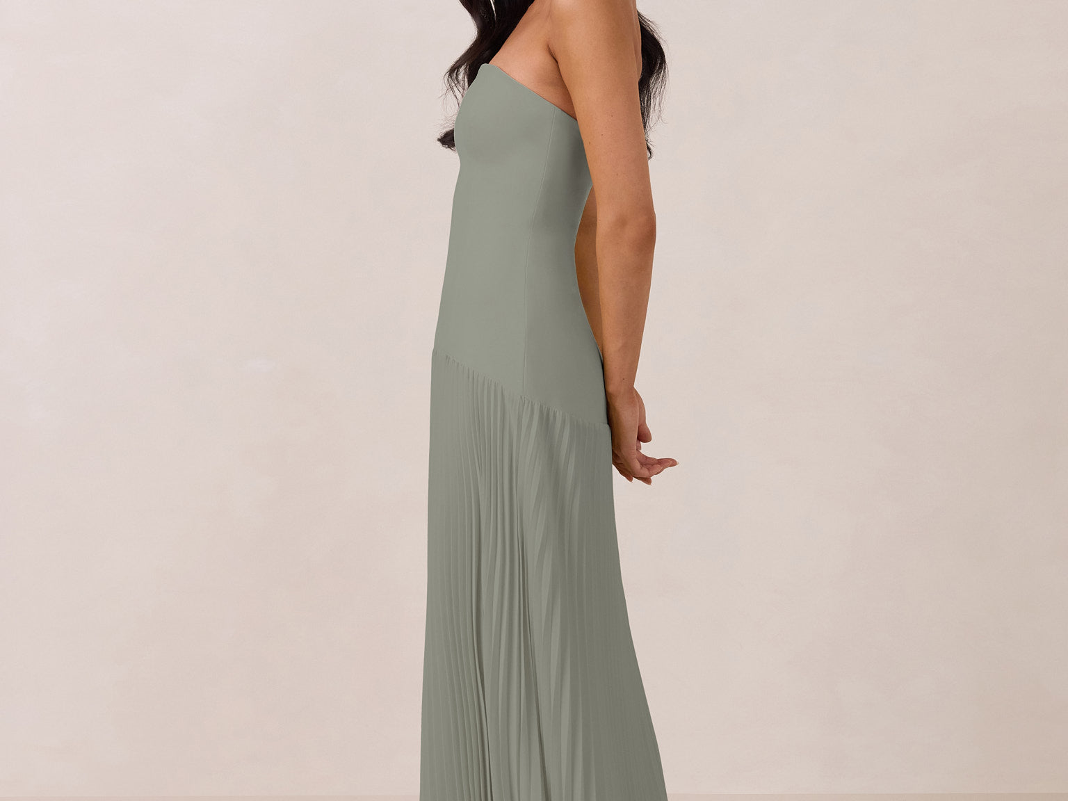 This dress captivates with its sleek stretch-crepe bodice and dreamy pleated skirt. The stretch crepe molds gently to your shape for a comfortable, supportive and flattering fit, while the lightweight skirt offers easy, effortless movement.