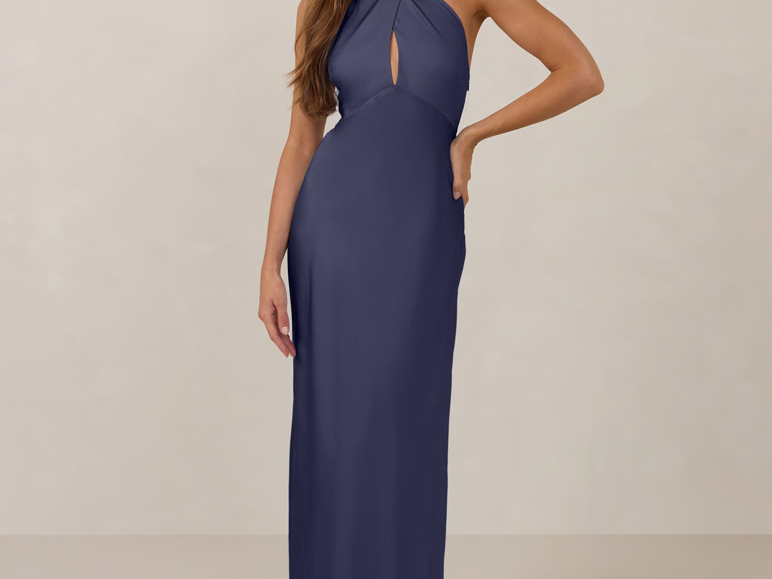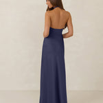 The Emery dress redefines timeless elegance with a contemporary twist. Crafted from our signature bubble satin, this full-length dress features a flattering cross-front halter neckline, creating soft drapes and a delicate keyhole detail for a touch of allure. The bias-cut skirt gracefully skims the body, ensuring comfort and a flawless silhouette that you'll want to wear repeatedly.