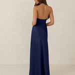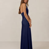 The Emery dress redefines timeless elegance with a contemporary twist. Crafted from our signature bubble satin, this full-length dress features a flattering cross-front halter neckline, creating soft drapes and a delicate keyhole detail for a touch of allure. The bias-cut skirt gracefully skims the body, ensuring comfort and a flawless silhouette that you'll want to wear repeatedly.
