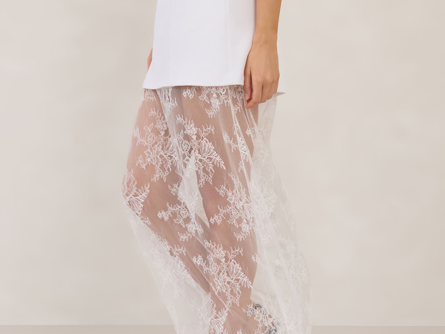 - Sheer fitted Cicely Lace skirt