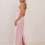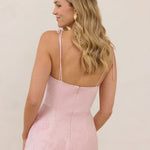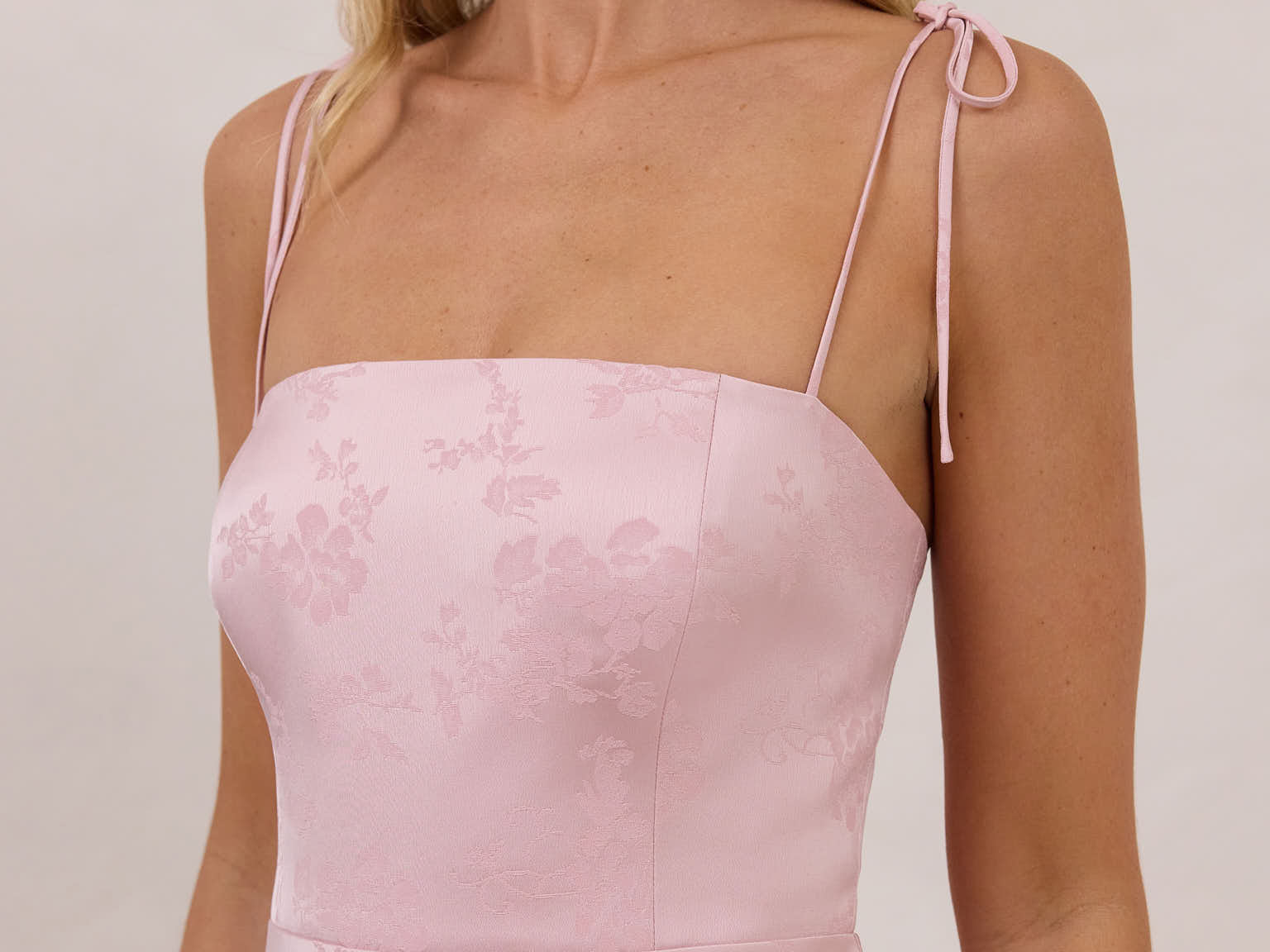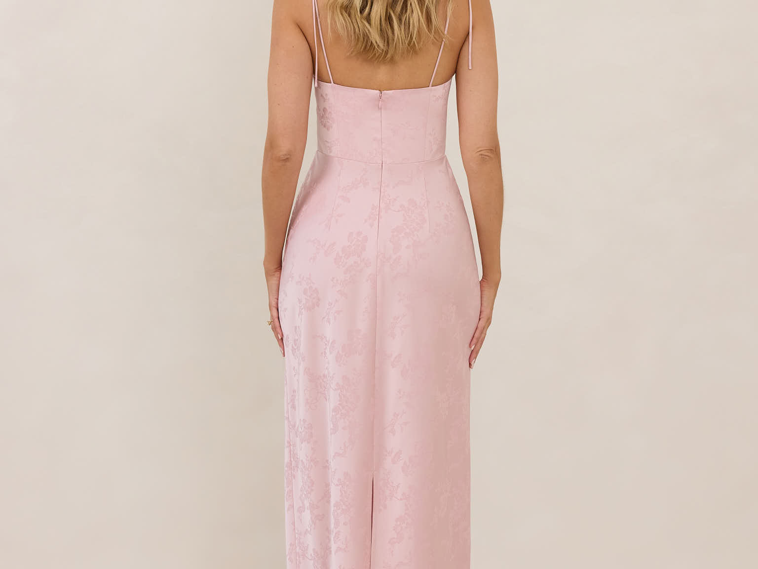 The Lenore Dress is a lesson in effortless elegance. A straight, tea-length skirt with a back slit creates a refined yet effortless look, while the adjustable straps and bodice lining ensure a comfortable, flattering fit.