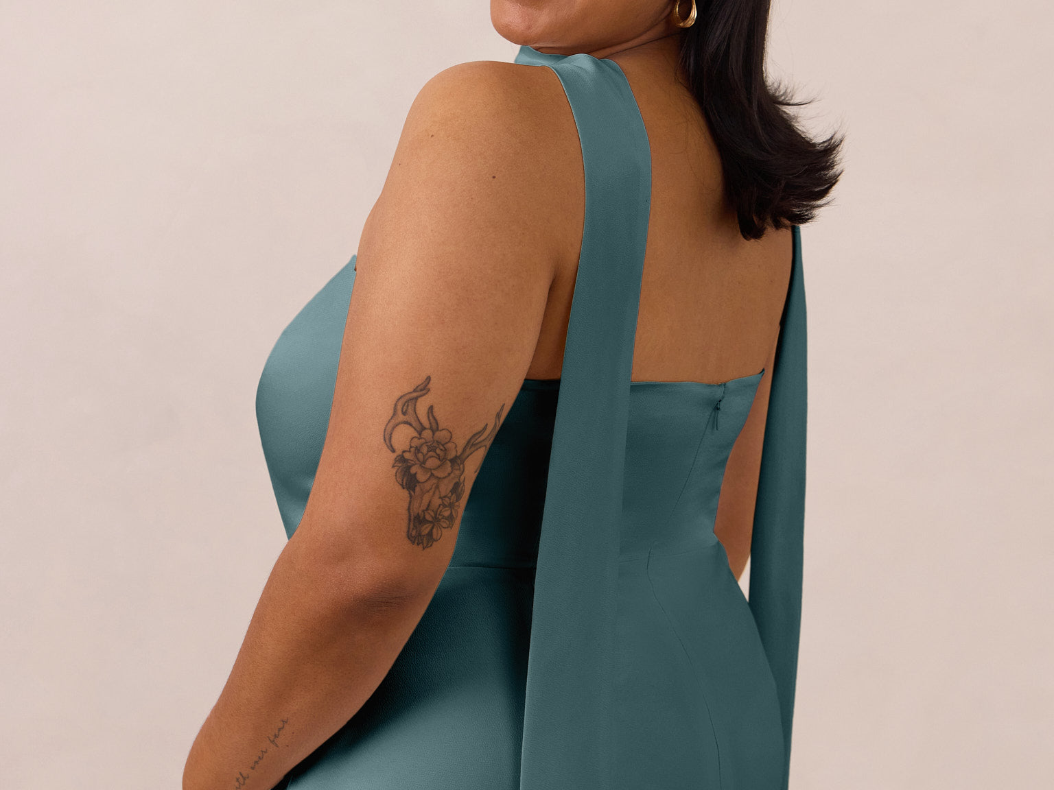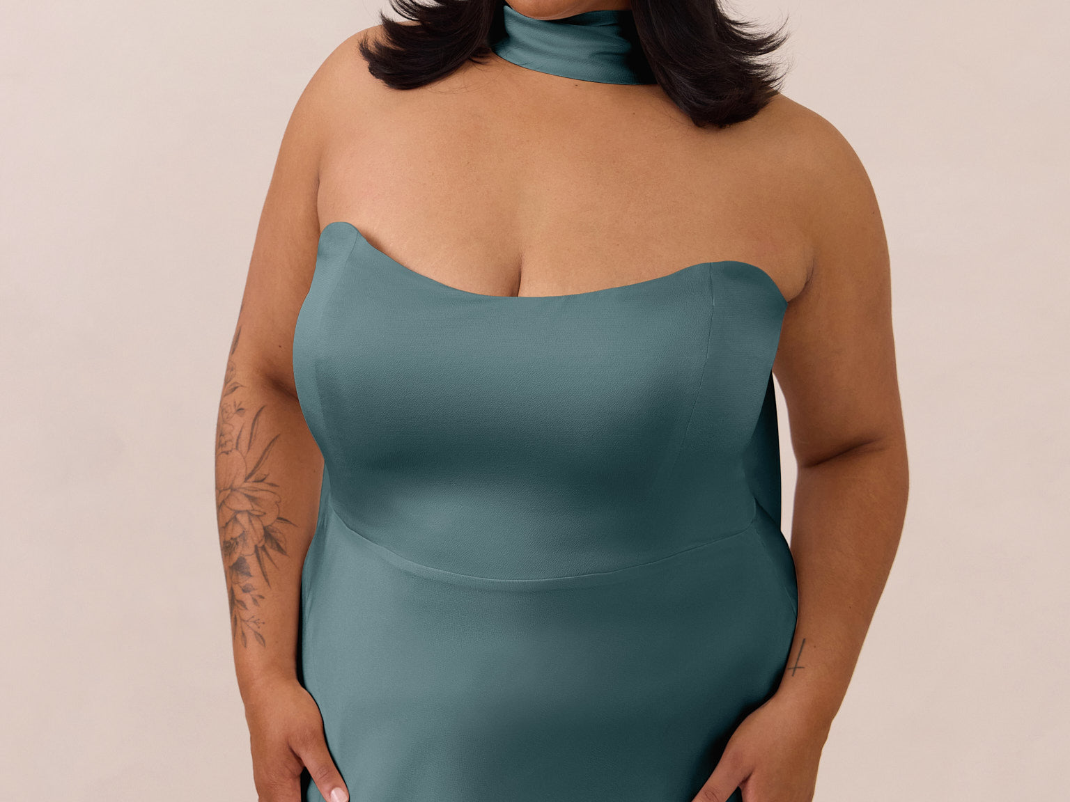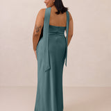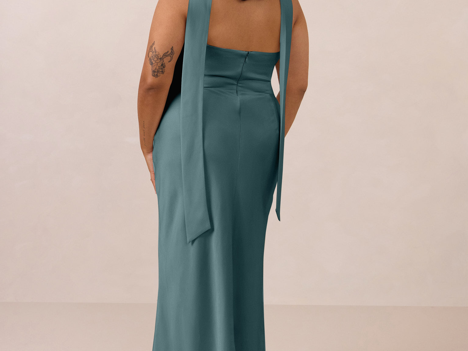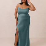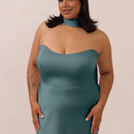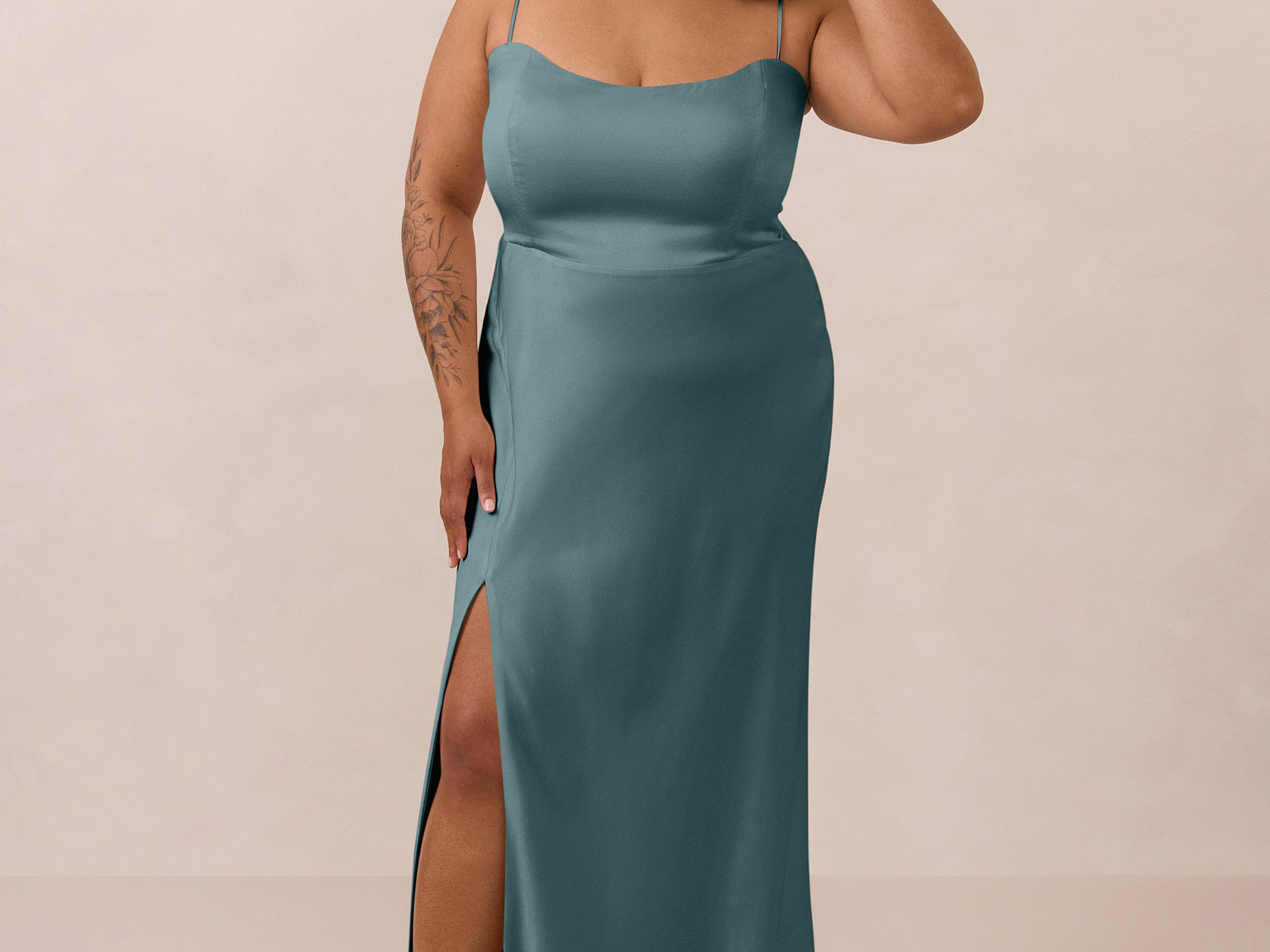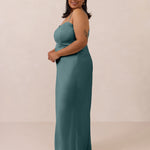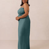 With an emphasis on the details, this satin maxi dress is cut on the bias for an ultra-flattering drape that skims the body perfectly. A subtle, hip-grazing slit adds movement and a touch of leg, while removable straps offer versatility—wear it strapless for a sleek look or with straps for added support and structure.