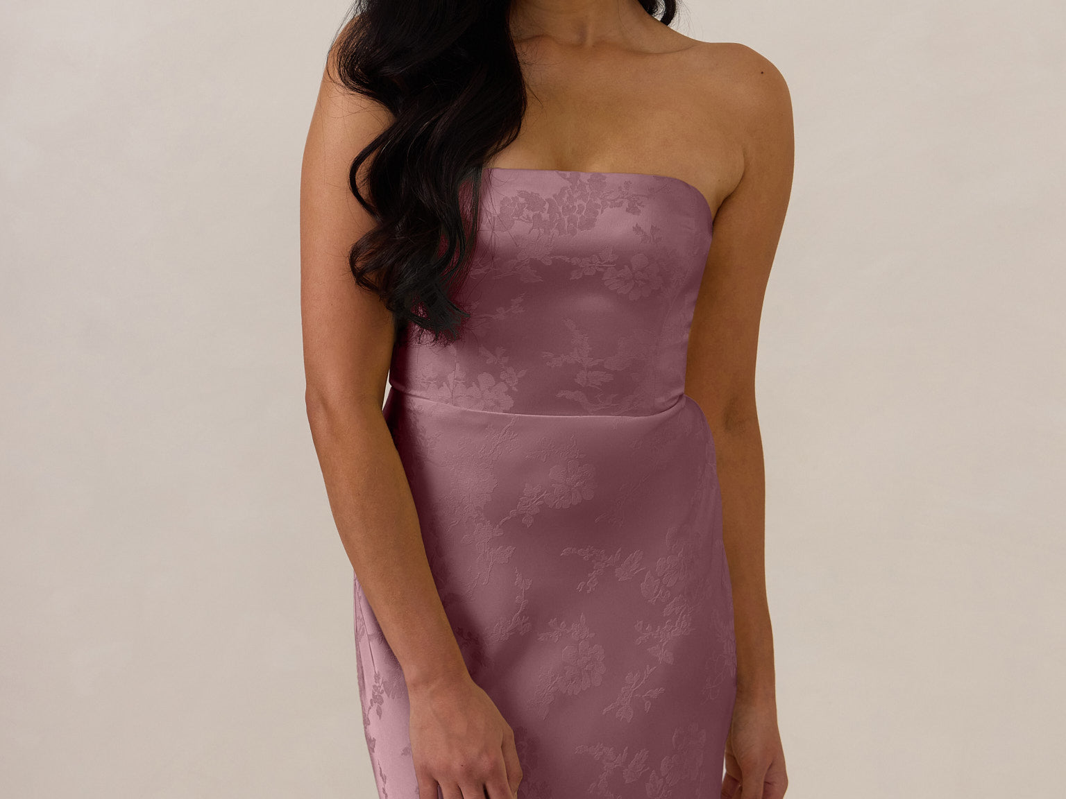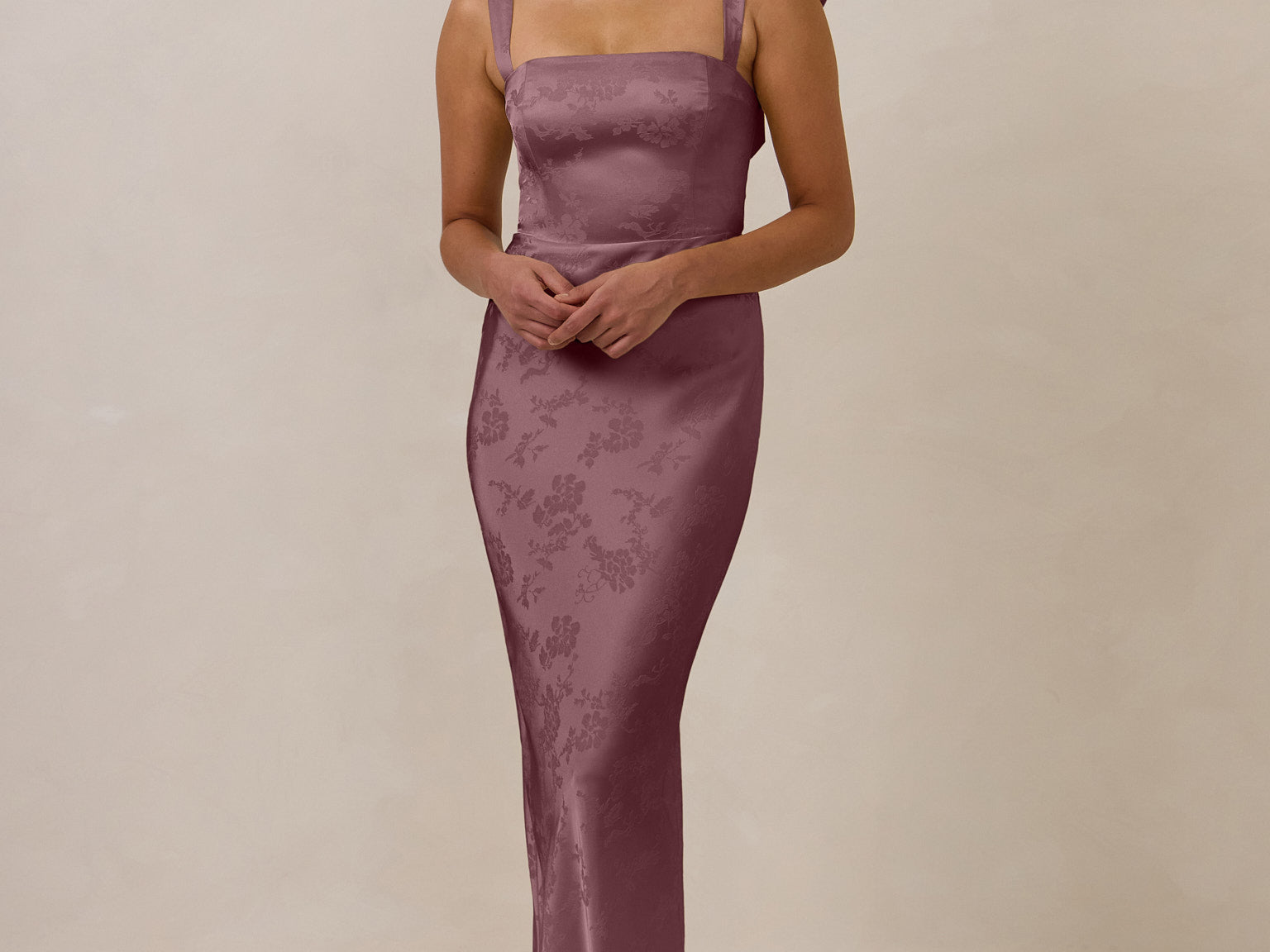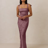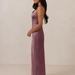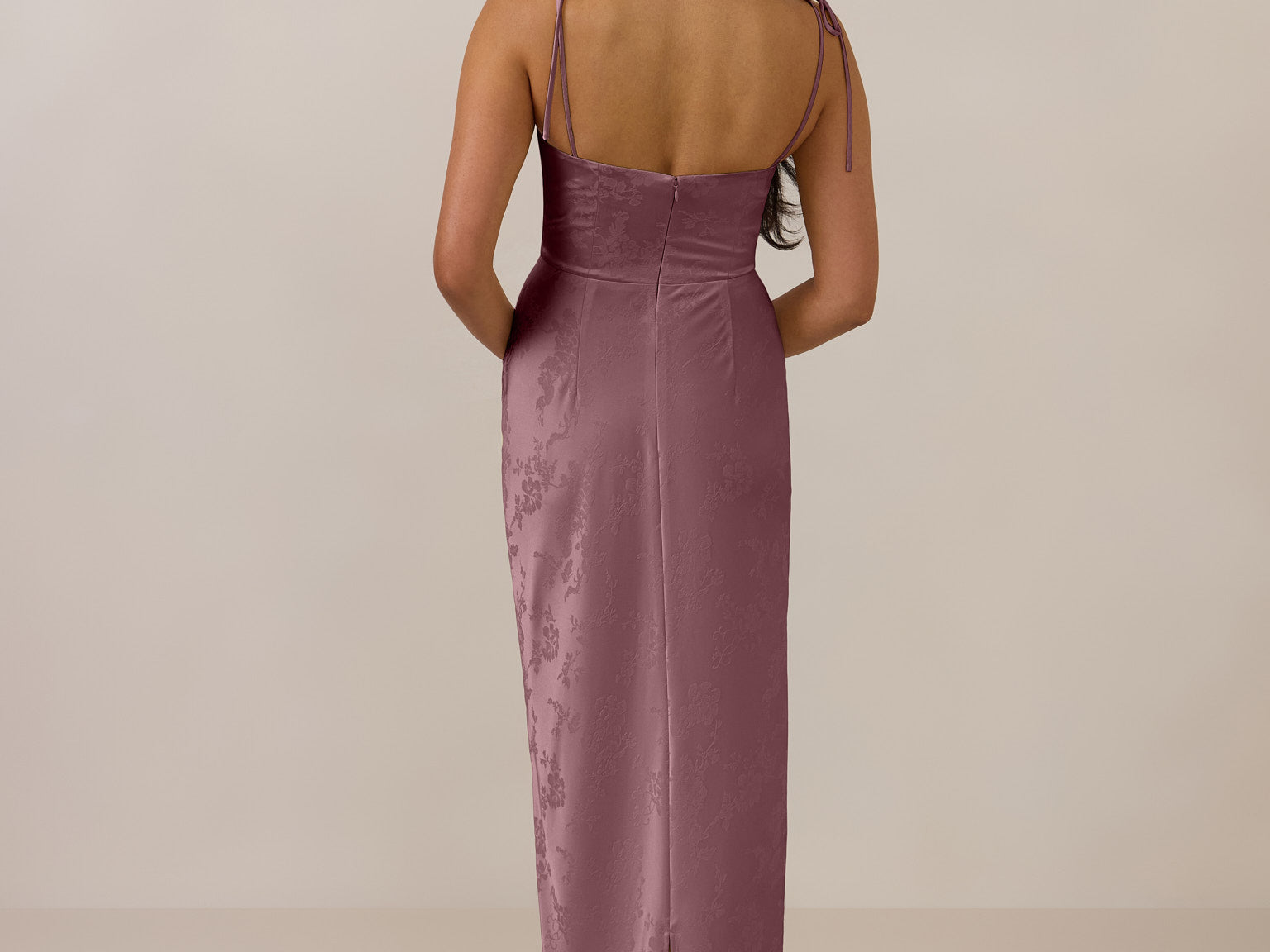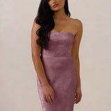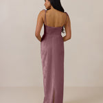 The convertible Meridian dress offers understated sophistication with a floor-grazing silhouette and a back slit for graceful movement. Featuring a structured bodice for a sculpted fit, the design includes interchangeable straps that can be styled thin, thick, or strapless. This versatile and elegant piece is designed to provide quiet confidence for any occasion.