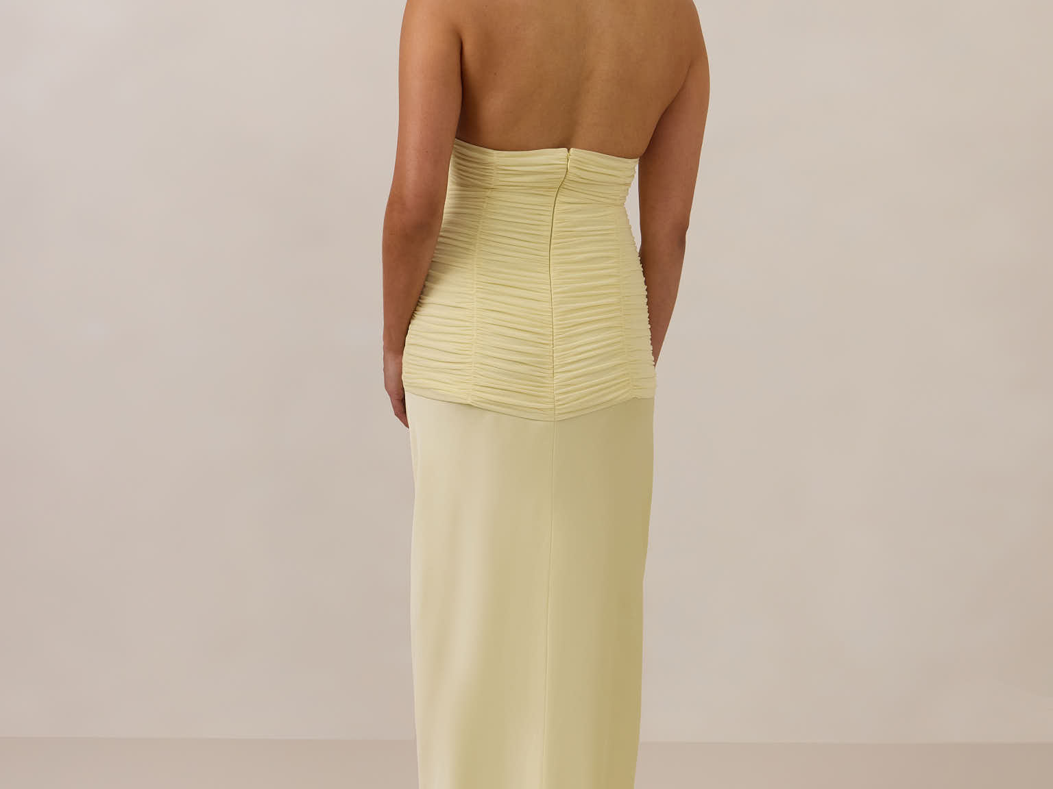 The Monroe is a modern halter dress cut in stretch chiffon and bubble satin for a balance of texture and structure. The bodice features a gathered chiffon overlay that contours the waist, while a bias-cut satin skirt drapes effortlessly for a smooth, flattering fit. Finished with a halter neckline secured by two buttons at the back and a discreet center-back zipper, this piece is designed for ease and movement while maintaining a polished silhouette.