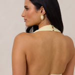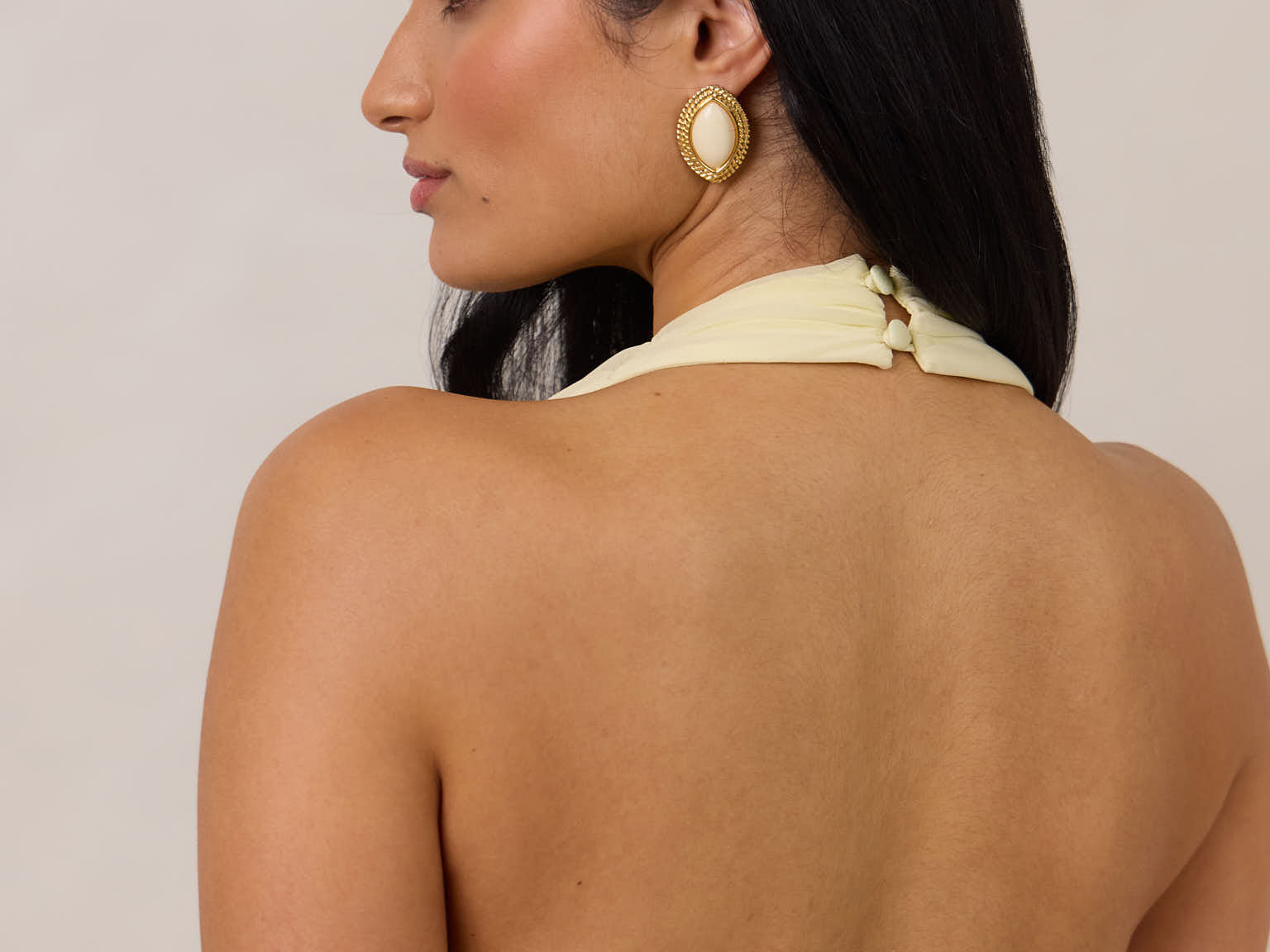 • Halter neckline with button closure