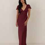 Effortlessly transition from daytime chic to evening elegance with our Noa dress. It features delicate flutter sleeves and a flattering V-neckline. The bias-cut maxi skirt drapes gracefully, creating a flattering silhouette that moves with you. This piece is the perfect solution for those who need a stylish yet comfortable option that can easily adapt to any occasion.
