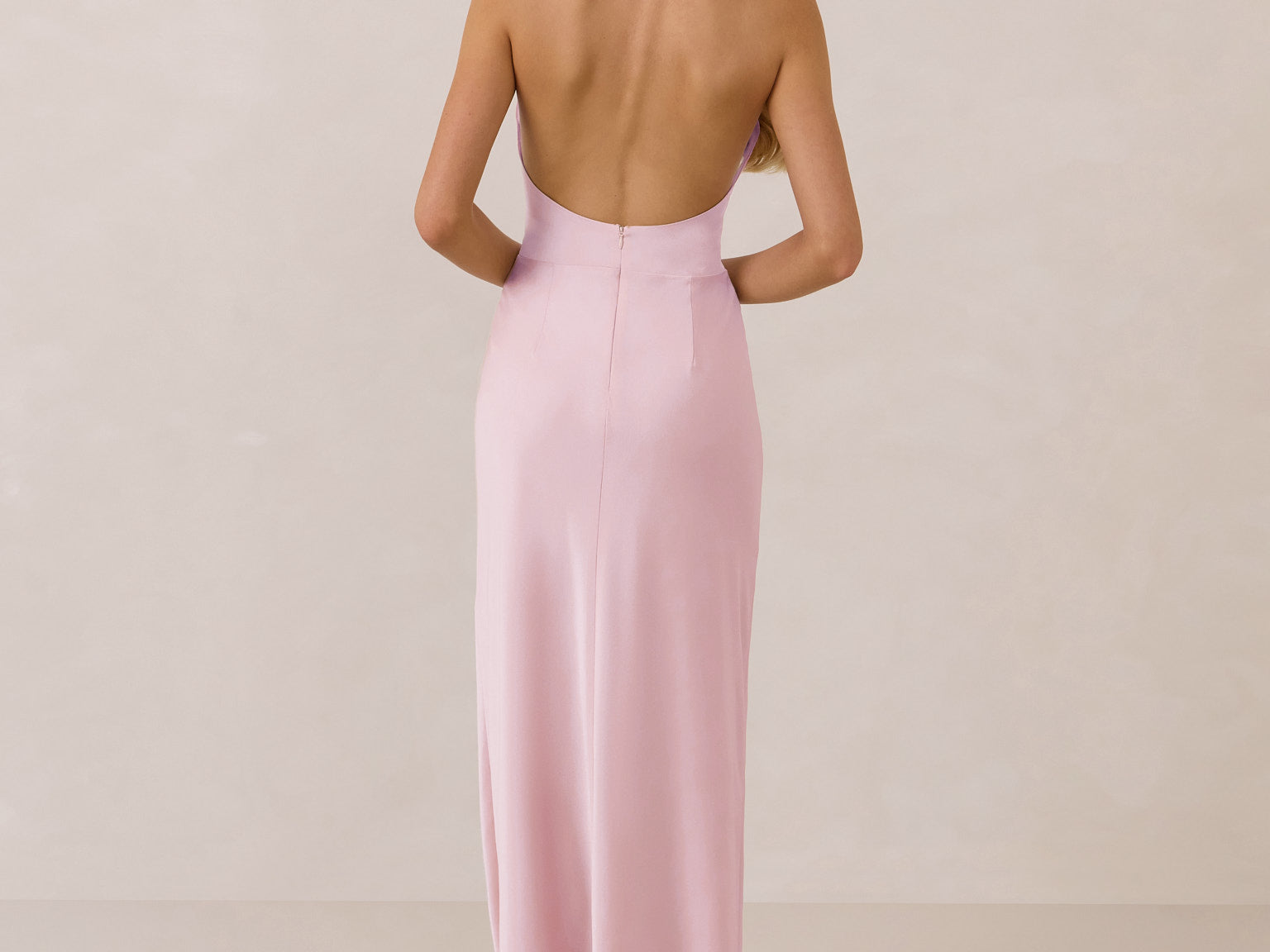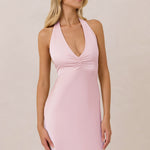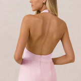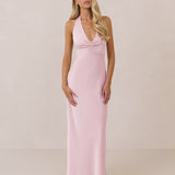 The perfect balance between bold and refined, this satin halter dress is designed to turn heads with quiet confidence. Featuring a plunging halter neckline that highlights the neck and collarbone, it's finished with a cinched detail at the bust to enhance shape and create a beautifully flattering silhouette.