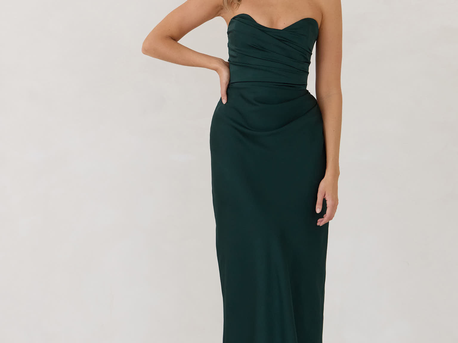 - Pleated bodice with boning