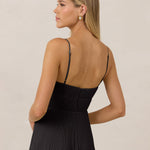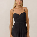 The Lena dress, crafted from airy chiffon, is a harmonious blend of elegance and movement. Its softly pleated skirt drapes gracefully, creating an ethereal flow with every stride. A modern touch is added by the structured V-wire neckline, which not only provides support but also subtly enhances the romantic silhouette.