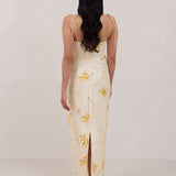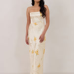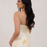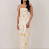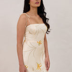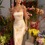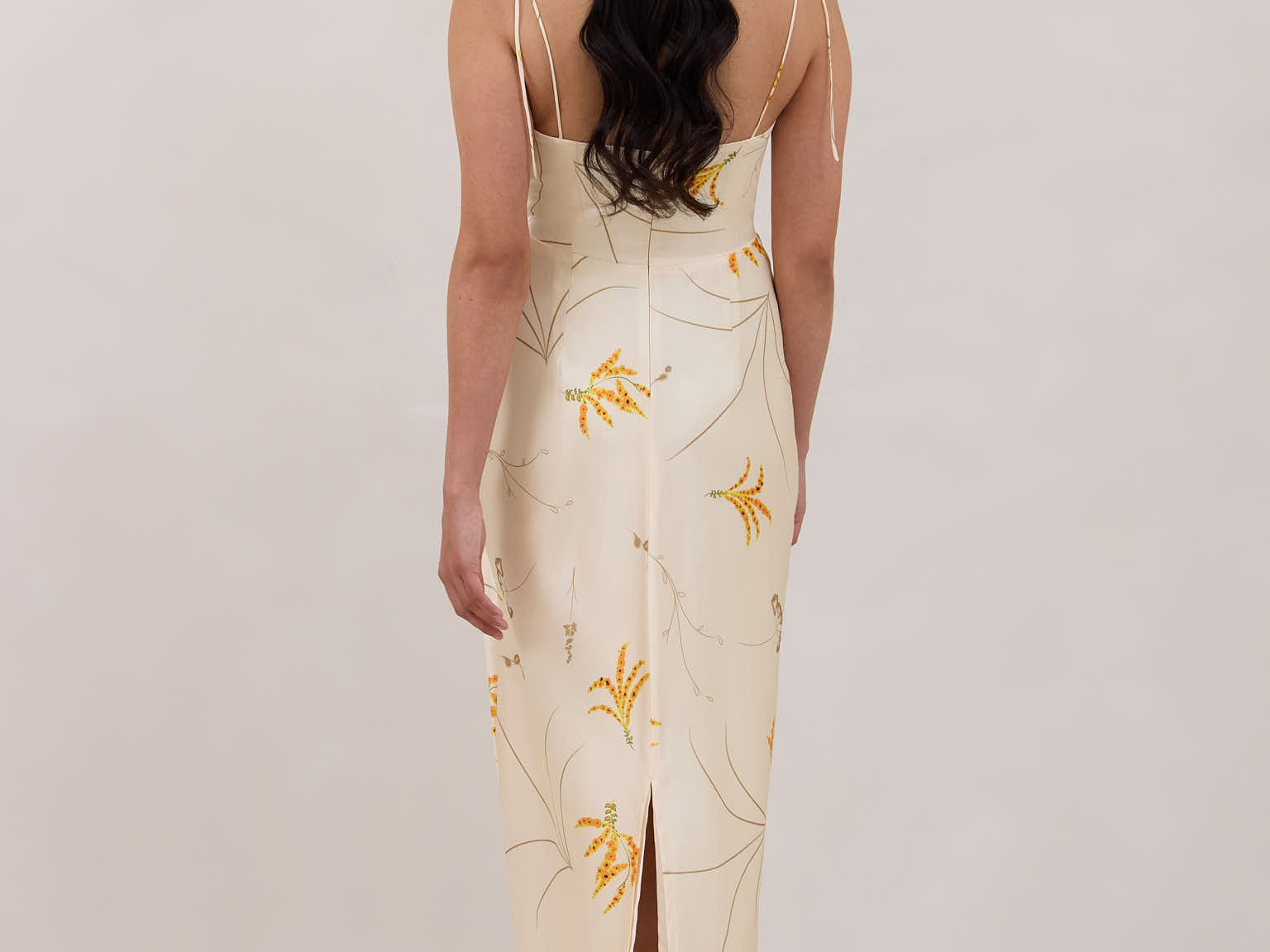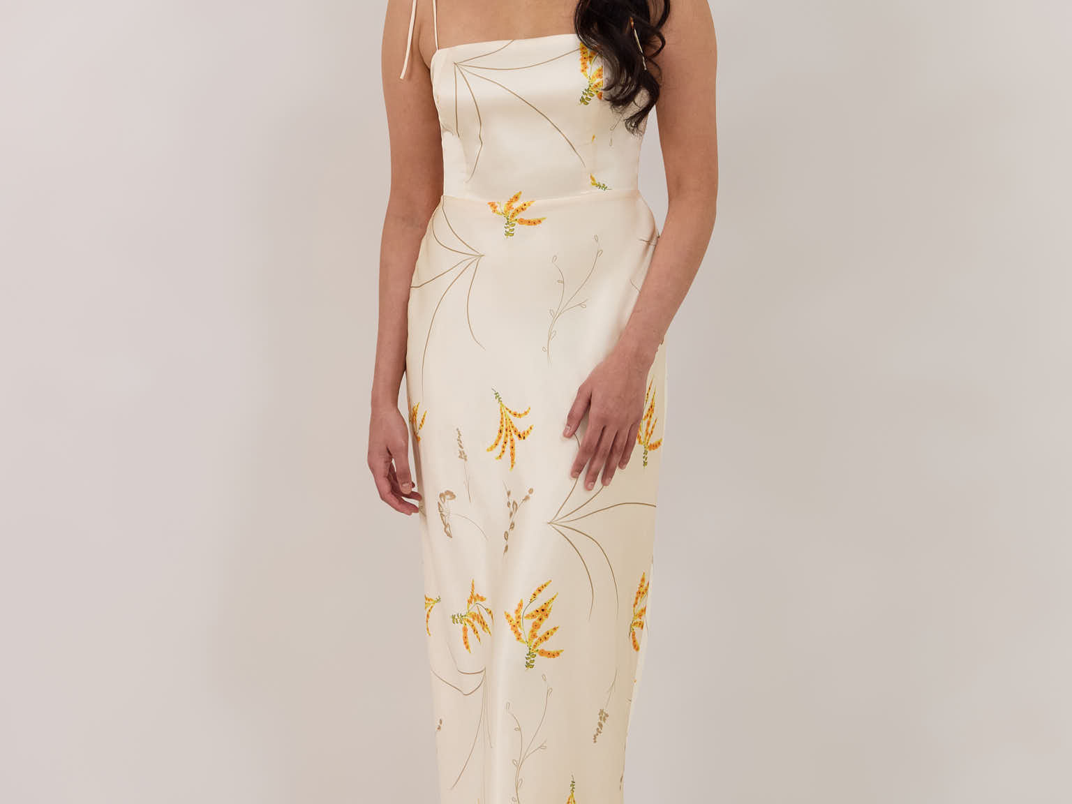 The Lenore Dress is a lesson in effortless elegance. A straight, tea-length skirt with a back slit creates a refined yet effortless look, while the adjustable straps and bodice lining ensure a comfortable, flattering fit.