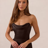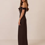 The Prescott Dress is the definition of effortless elegance. Designed with a soft draped chiffon neckline and delicate off-the-shoulder straps, it strikes the perfect balance between romance and refinement. For added versatility, the straps are removable, allowing you to easily switch up your look.