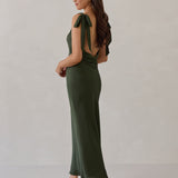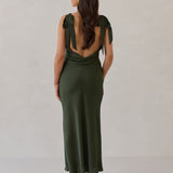 A true classic beauty - the sleek and simple front paired with the striking open, cowl back and tie straps is a match made in heaven.