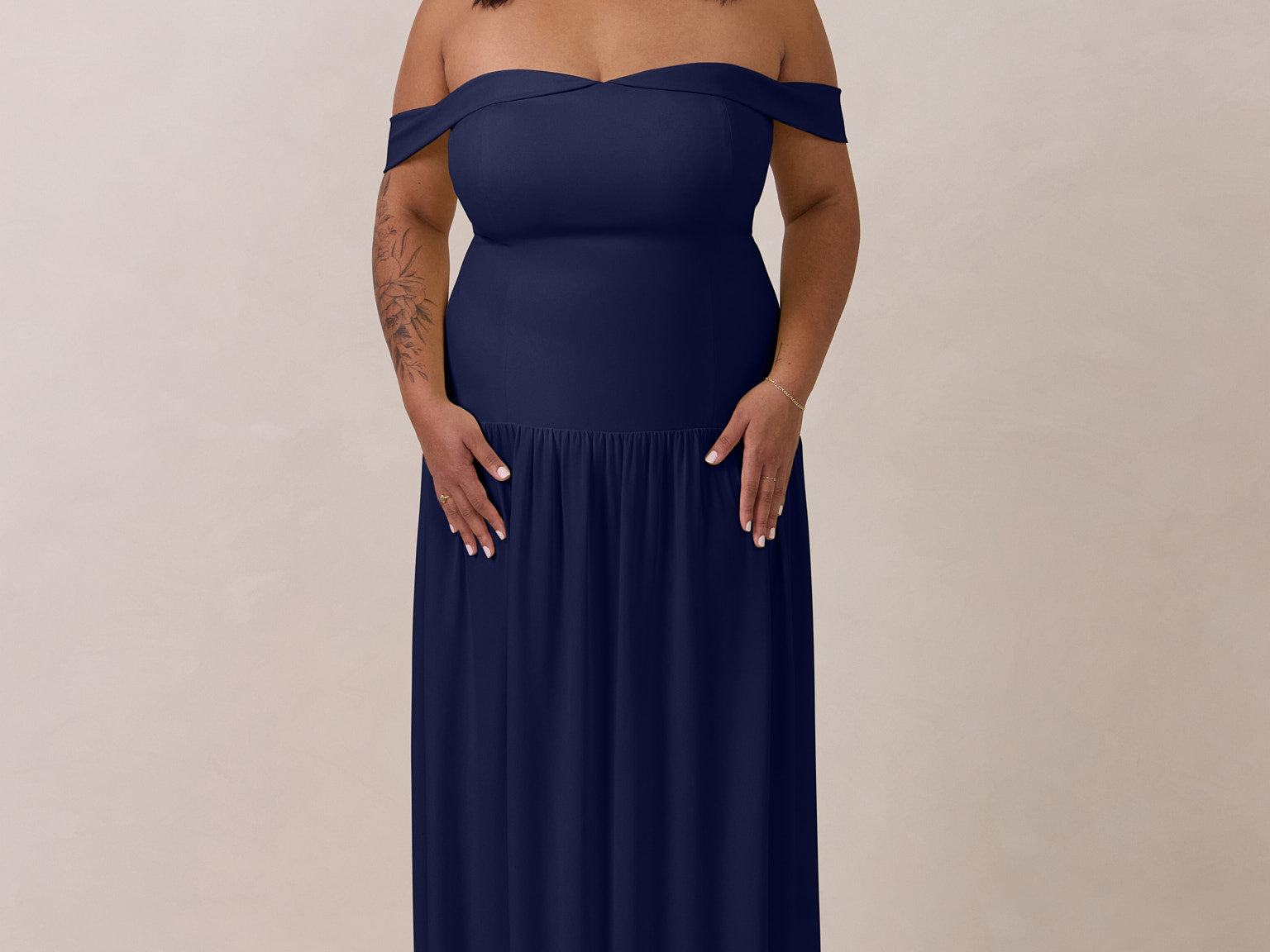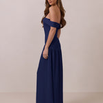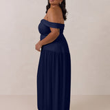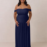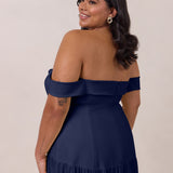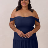 Turn heads in this breathtaking dress, featuring a romantic off-the-shoulder sweetheart neckline that elegantly frames your collarbones. The sleek, structured bodice flows seamlessly into a dropped waist and a pleated, airy skirt, creating a look that’s effortlessly sophisticated and perfectly made for dancing the night away.