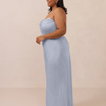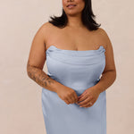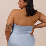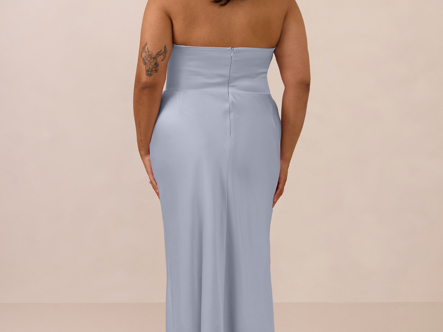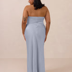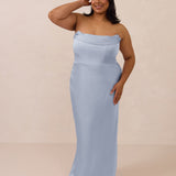 An elegant strapless design with a modern edge, this dress features an exaggerated pointed neckline and a boned bodice for a structured, flattering fit. The bias-cut skirt creates a smooth, elongating silhouette, while the full-length design makes it perfect for galas and formal occasions.