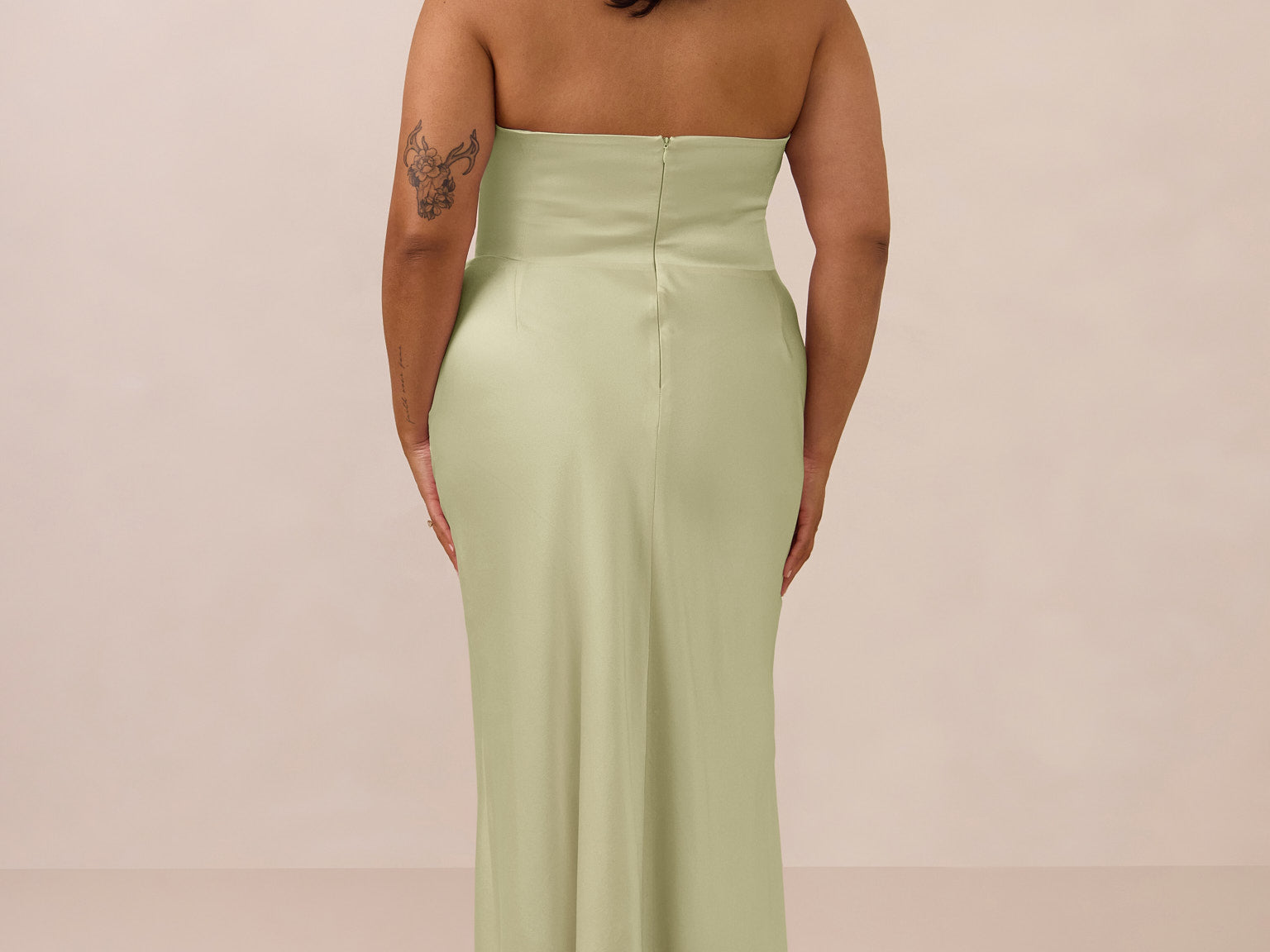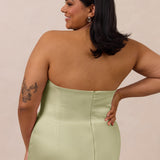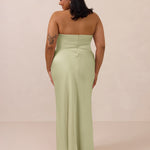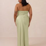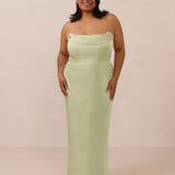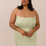 An elegant strapless design with a modern edge, this dress features an exaggerated pointed neckline and a boned bodice for a structured, flattering fit. The bias-cut skirt creates a smooth, elongating silhouette, while the full-length design makes it perfect for galas and formal occasions.