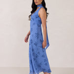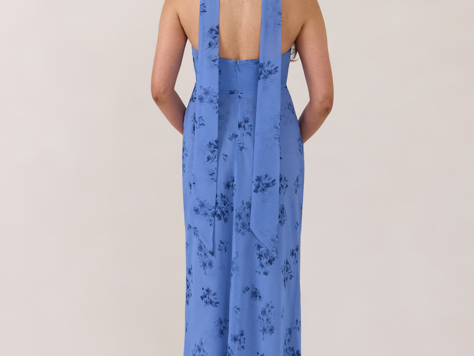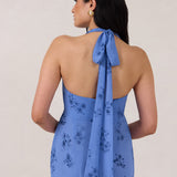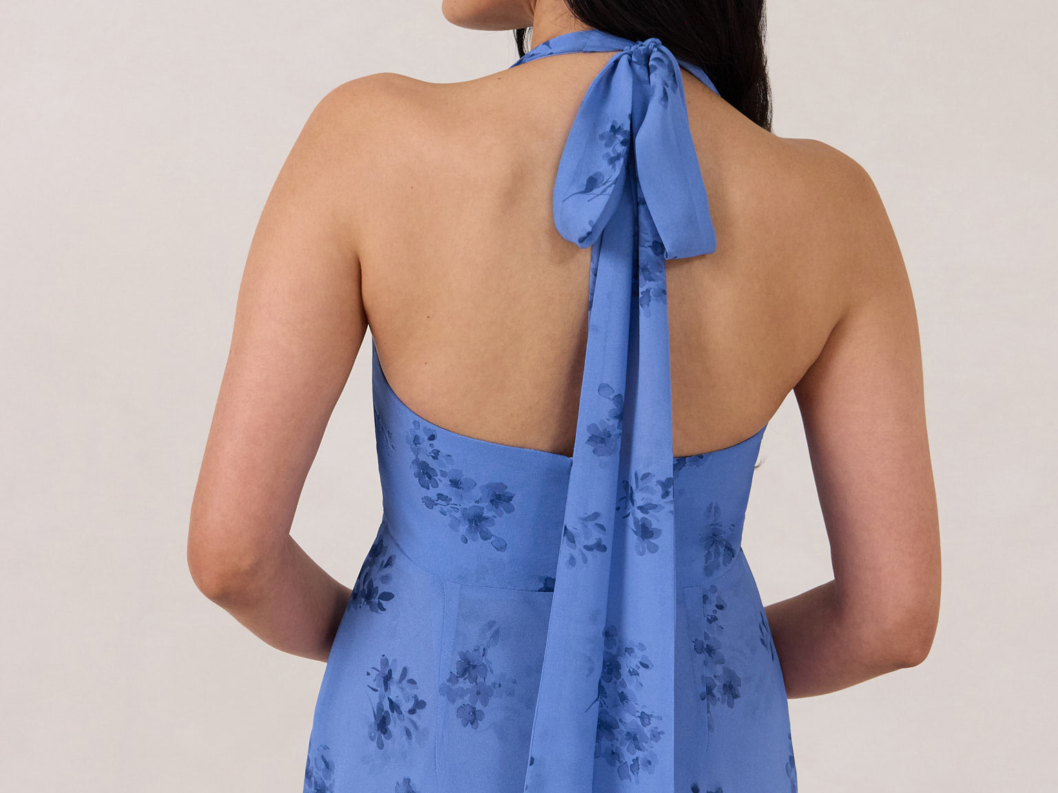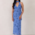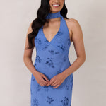 Effortlessly chic halter neck design crafted from soft chiffon that can be worn either as a halter or with a scarf detail. Featuring a bias-cut tea length skirt, this dress offers a flattering, flowing silhouette that moves with ease. Perfect for any occasion, this dress combines sophistication with practicality.