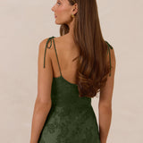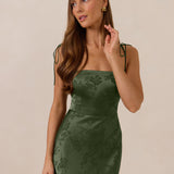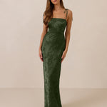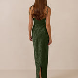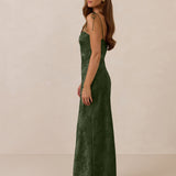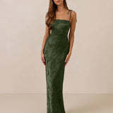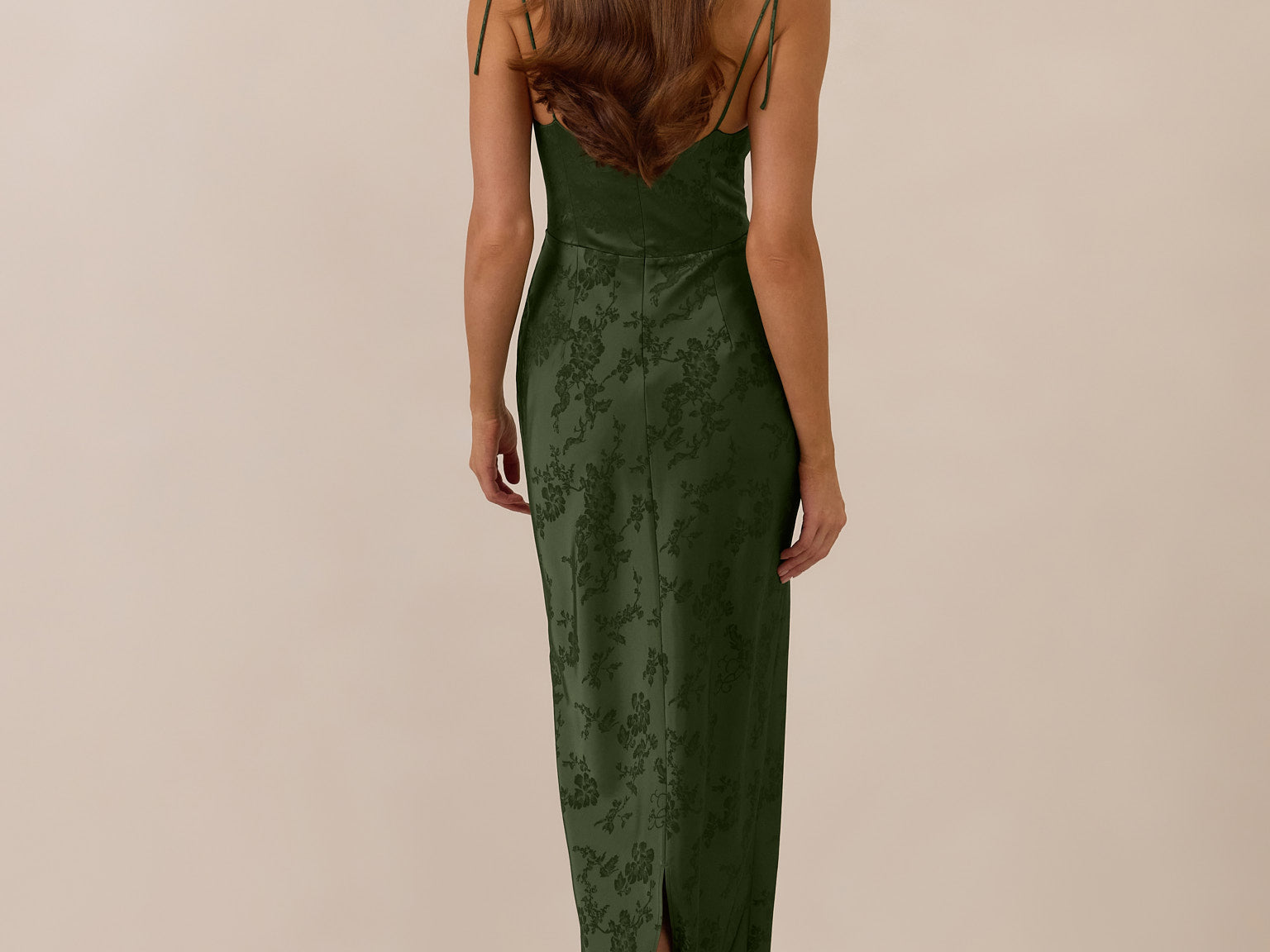 The Beckett dress embodies understated sophistication. Its floor-grazing silhouette flows effortlessly, complemented by a subtle back slit for added movement and a modern touch. Featuring a softly structured bodice and adjustable tie straps, it ensures both comfort and a tailored fit, making it perfect for any occasion requiring quiet confidence.