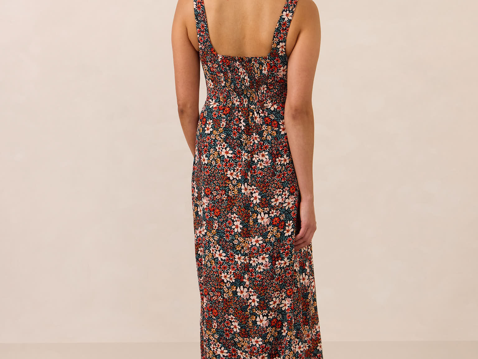 Effortlessly chic, this dress is perfect for guesting and special occasions alike. Designed with flattering thick straps and an easy-fitting A-line midi skirt that flows beautifully, it creates a refined silhouette with effortless movement. A front slit adds a modern touch, making it a timeless choice for any event.